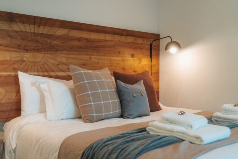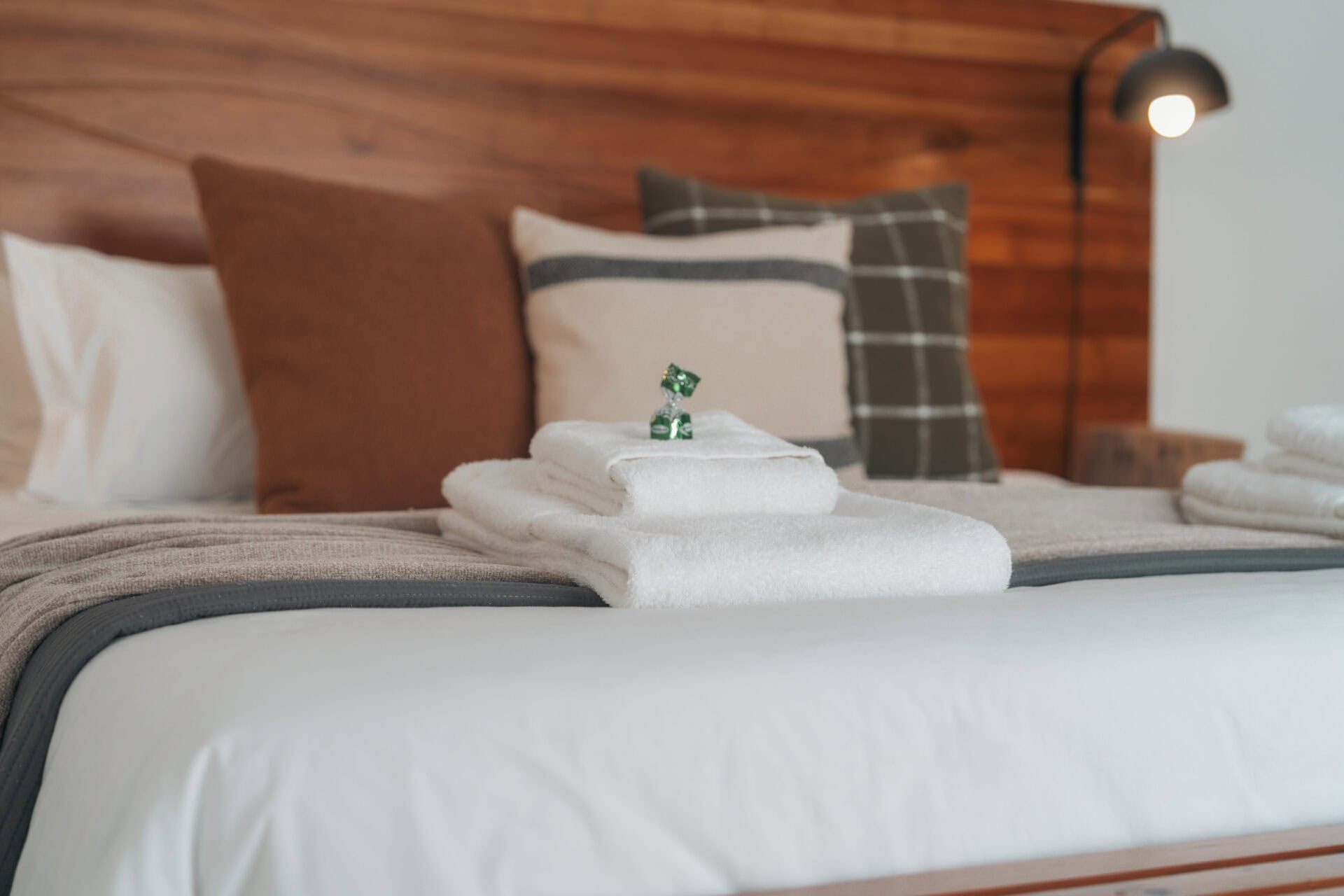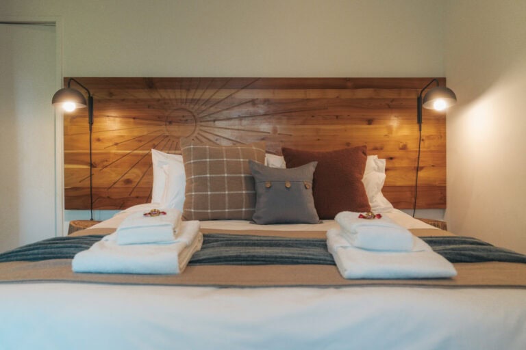 The two bedrooms are located on opposite sides of the cabin and are mirror images of each other. Each room comes with a king-sized, extra length bed and a clothing rail for storage. Hot water bottles and extra blankets are provided for winter.