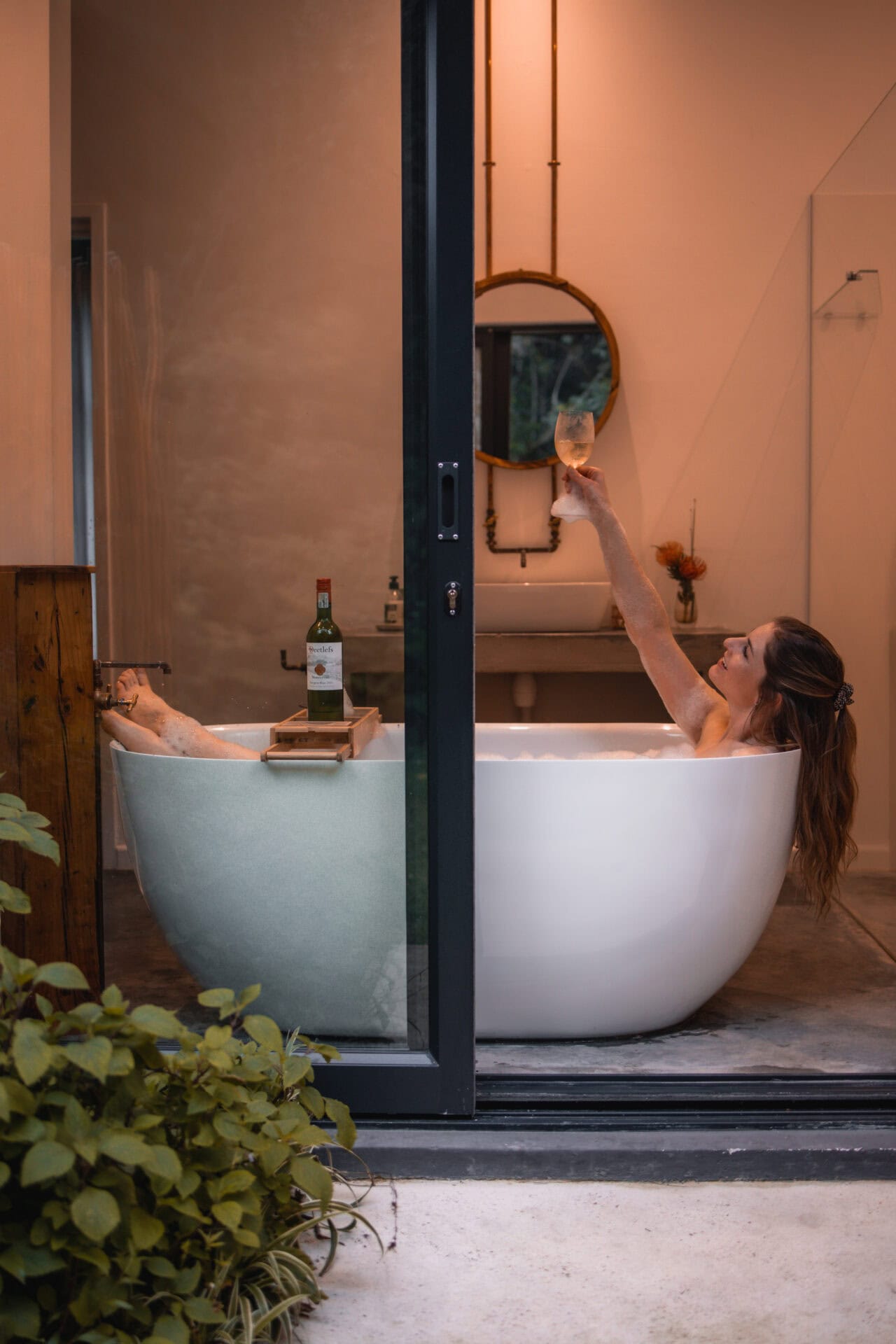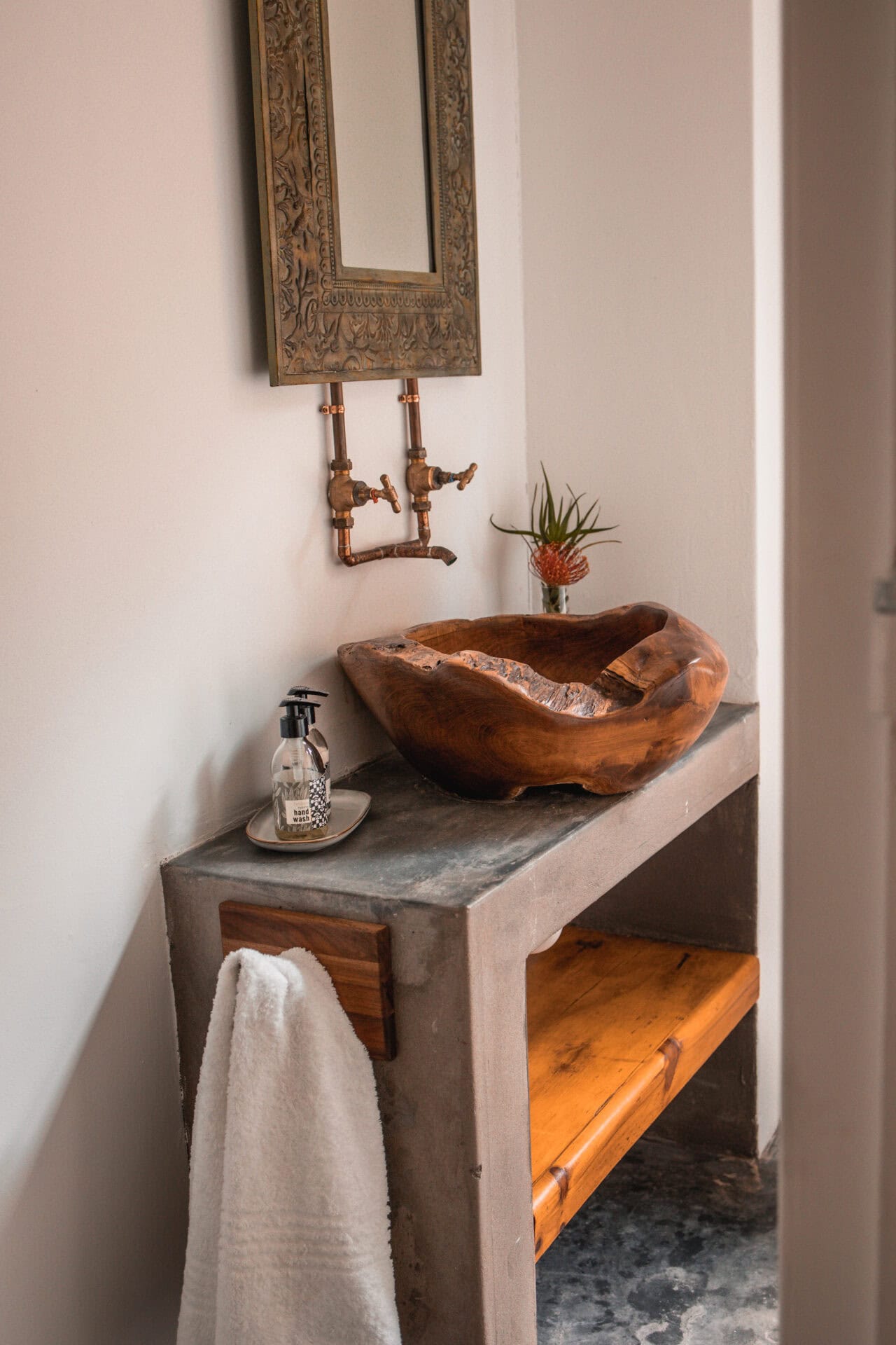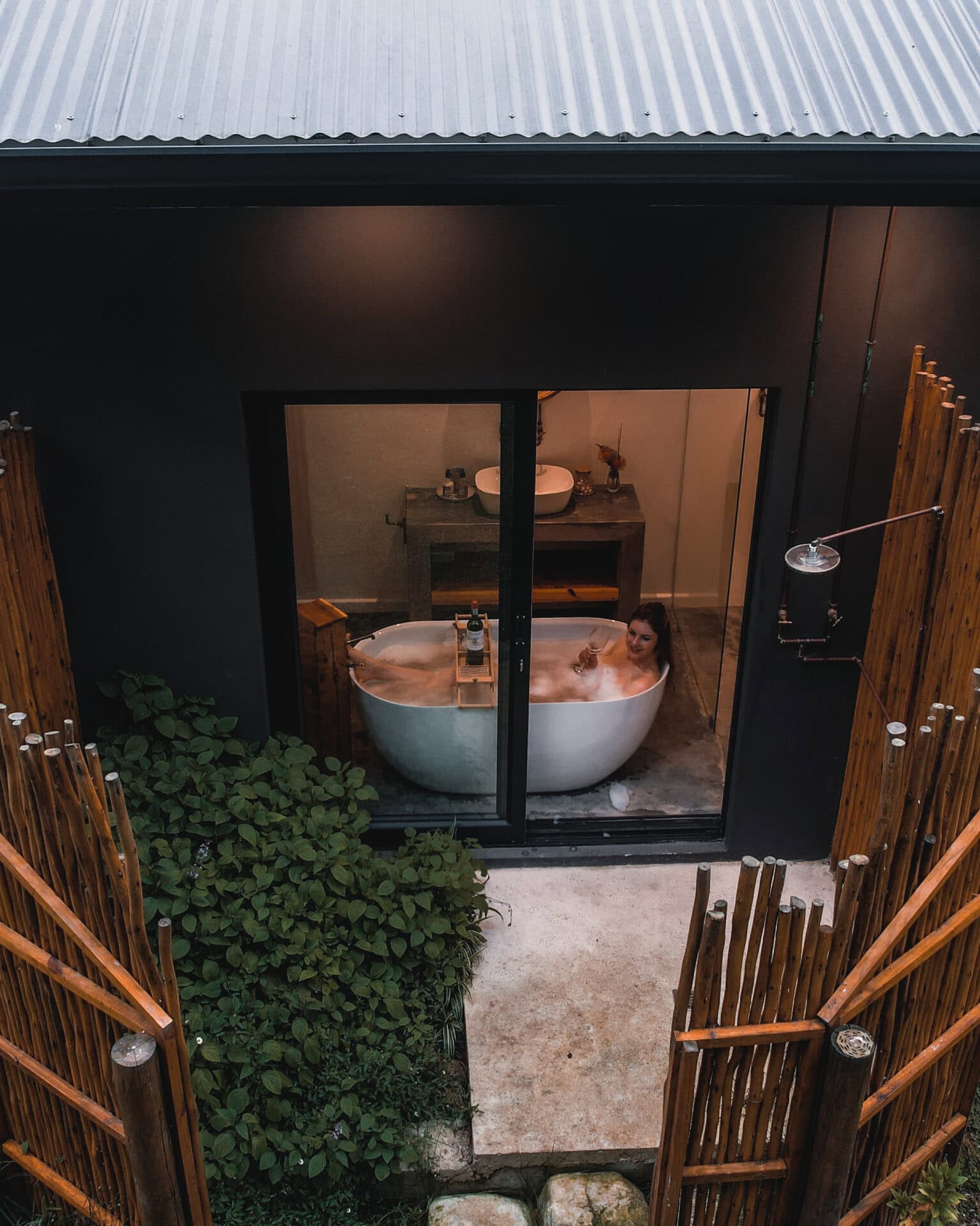 We loved that Boshuis (Forest House) truly lives up to its name! Surrounded by trees and birds, it felt incredibly peaceful and the perfect spot to reconnect with nature. The cabin is also thoroughly equipped and the farm fresh eggs and rusks went down a treat! Most of our time was spent outdoors enjoying the fire pit, hot tub, pizza oven and outdoor shower. We highly recommend doing the waterfall hike – it’s an easy hike that leads to a beautiful waterfall and freshwater pool.