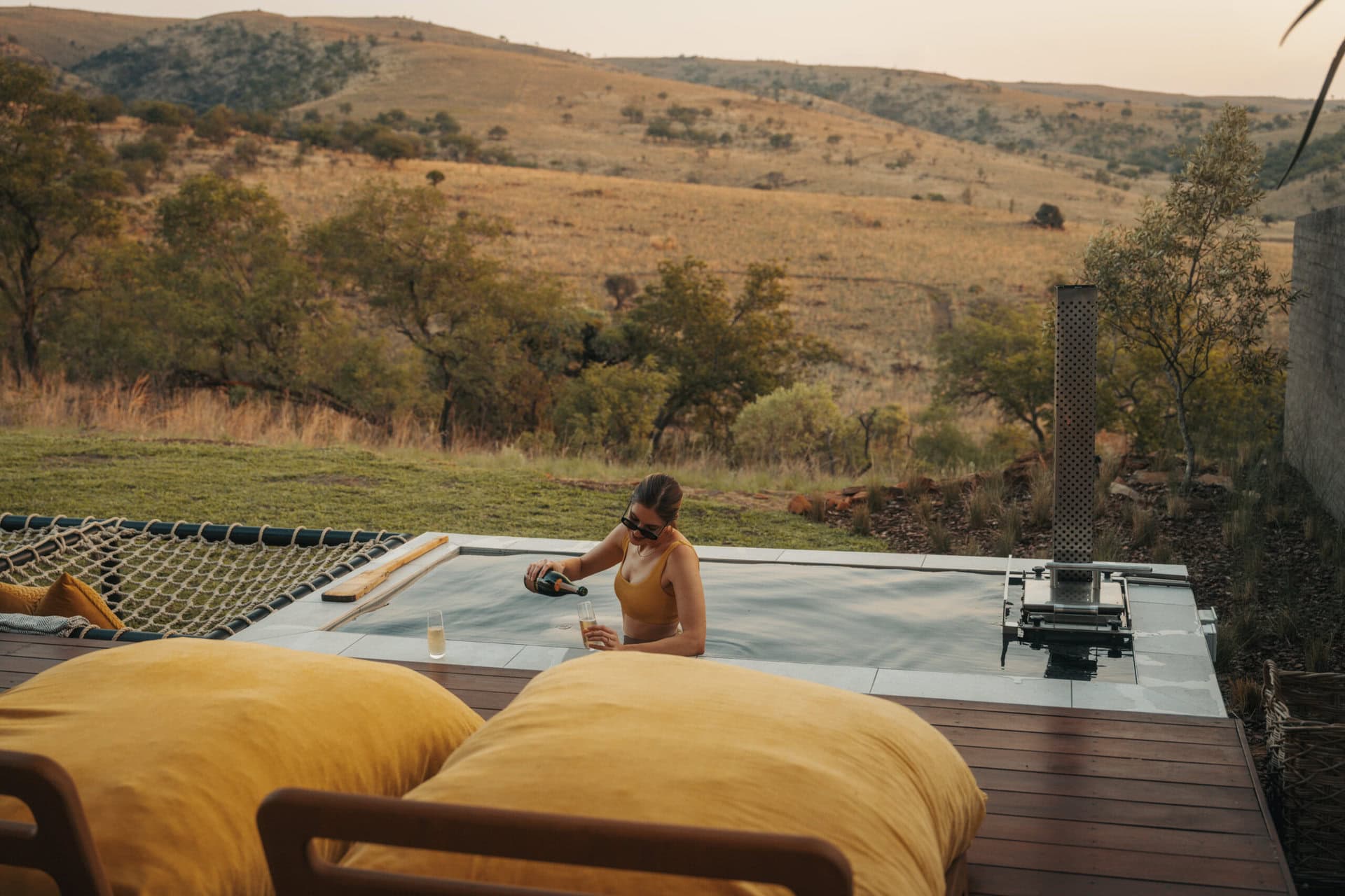 Just an hour from Johannesburg, this is one of those places that feels worlds away yet so easy to reach! The Valley Pods take everything we loved about the original Mountain Pods and turn it up a notch on the luxury scale – with sleek design, more spacious interiors, thoughtful details, and those signature views that stretch for miles. Spend your days chilling on the cargo nets or beanbag loungers, soaking in the hot tub, or curling up around the fire pit under a sky full of stars.