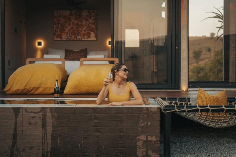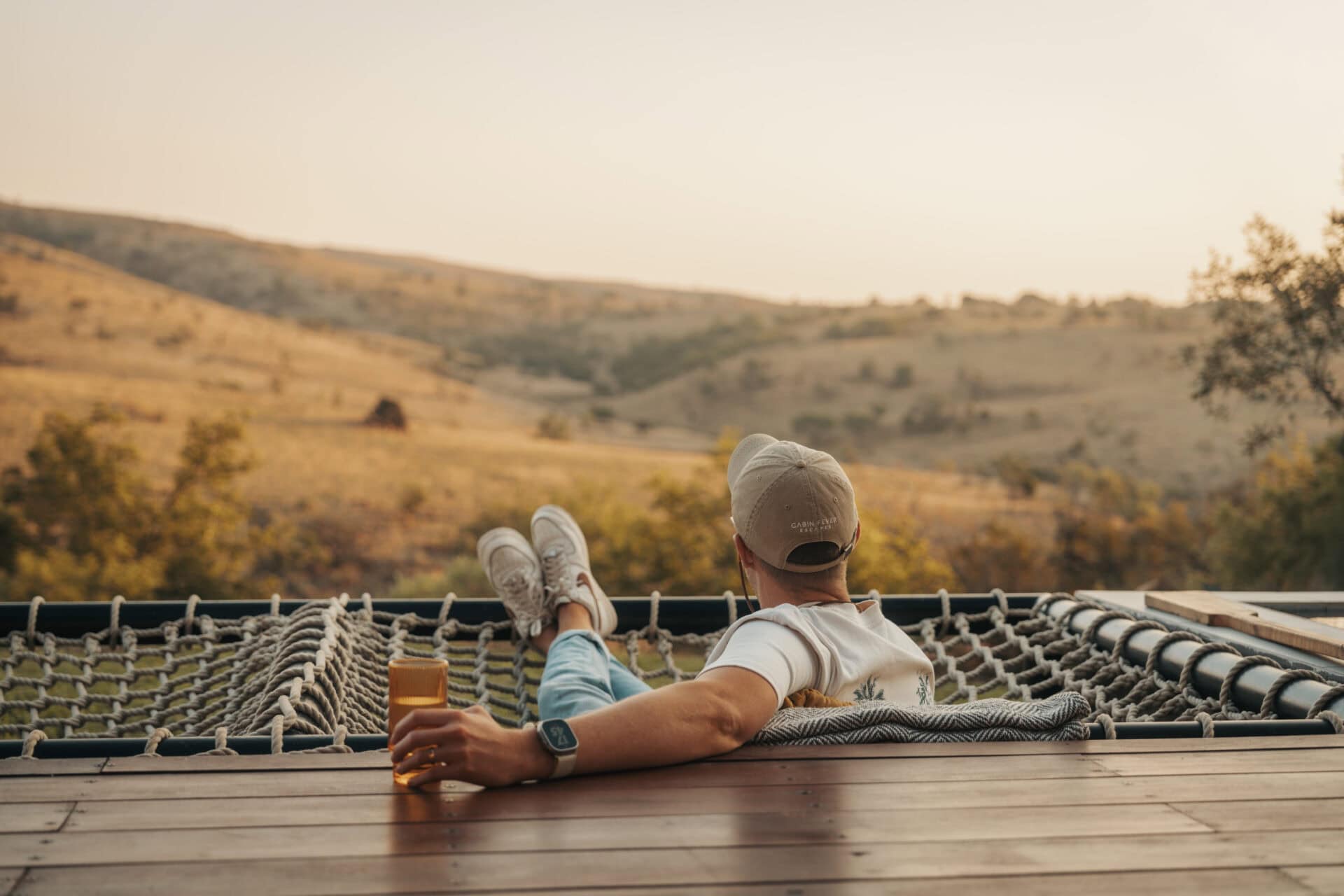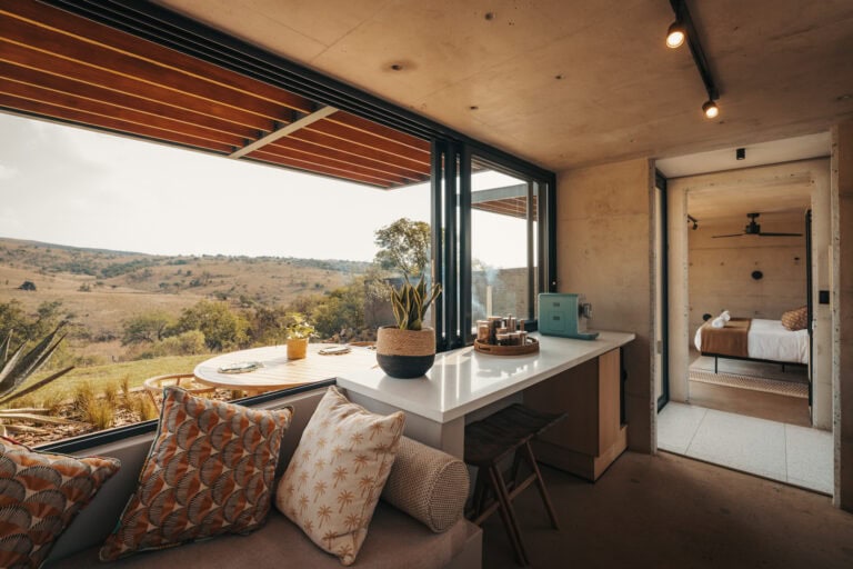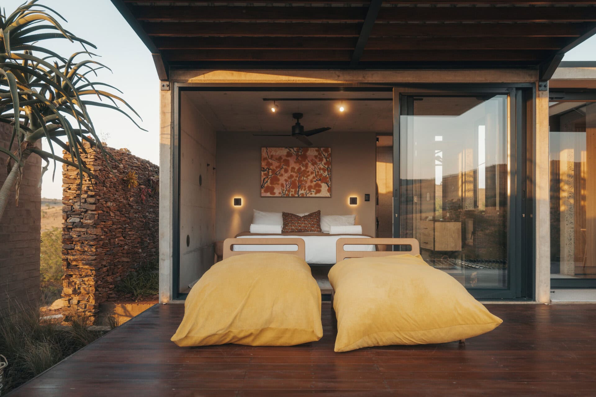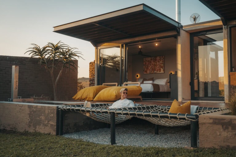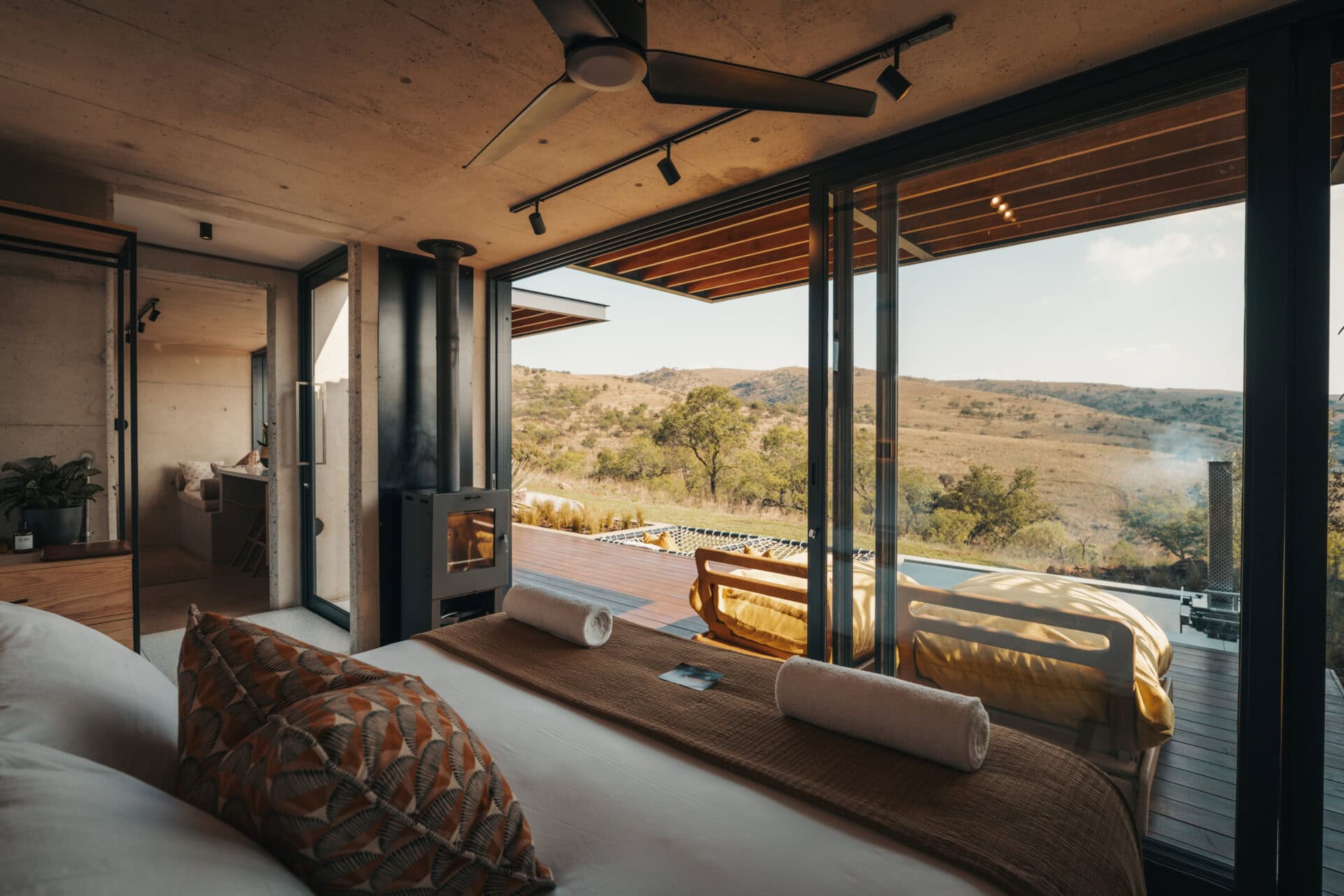 Just an hour from Johannesburg, this is one of those places that feels worlds away yet so easy to reach! The Valley Pods take everything we loved about the original Mountain Pods and turn it up a notch on the luxury scale – with sleek design, more spacious interiors, thoughtful details, and those signature views that stretch for miles. Spend your days chilling on the cargo nets or beanbag loungers, soaking in the hot tub, or curling up around the fire pit under a sky full of stars.