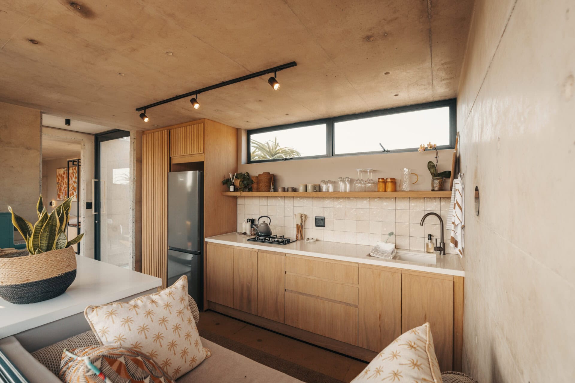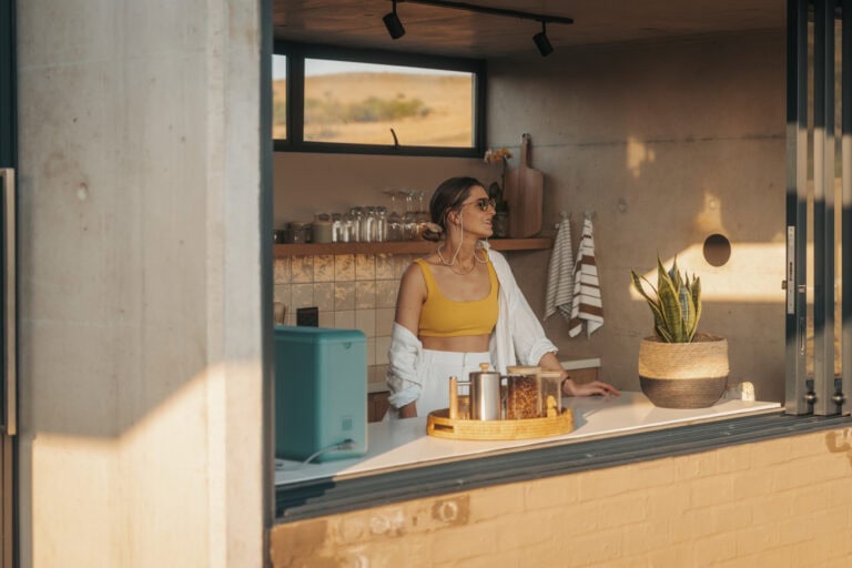 The space has been designed for outdoor living, but if the weather isn’t great, you can dine at the kitchen countertop or curl up on the window seat with a good book in hand.