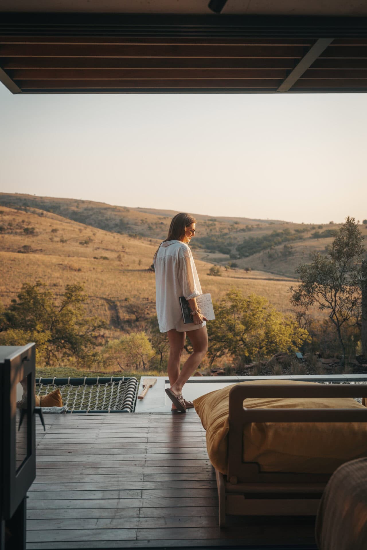 The location is absolutely spectacular, it honestly feels like you’ve stepped into another world! It’s peaceful, relaxing, and filled with incredible birdlife, and the cabin has been cleverly positioned to feel completely private. It also feels super safe, with an electric fence around the perimeter and 24/7 security. The small touches are next level, they’ve truly thought of everything, but our favourite spot to chill had to be those beanbag sun loungers. We didn’t want to get off!