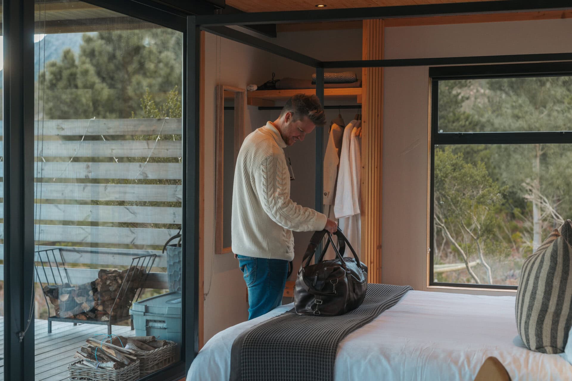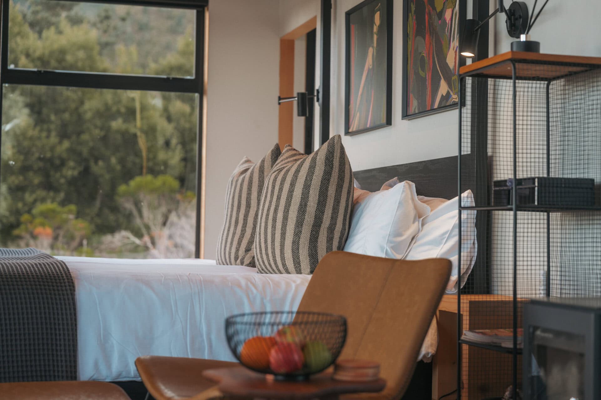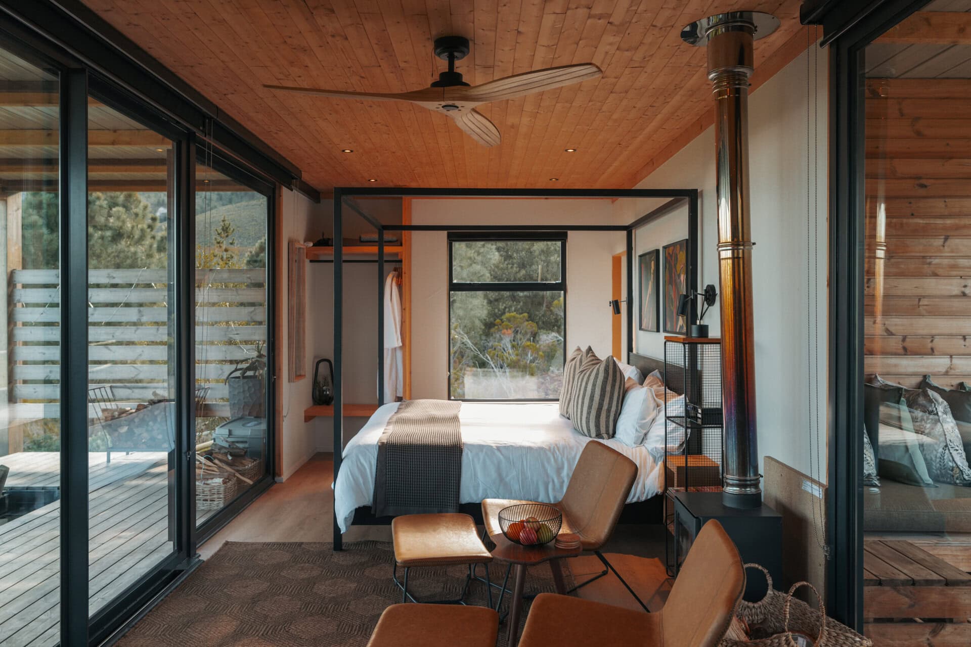 Tucked away on a peaceful stud farm in the heart of the Overberg, this private cabin is surrounded by wide-open paddocks, fresh country air and endless views, yet it’s just a 10-minute drive to some of the region’s top wine farms. With sweeping views from both the front and back decks, you’ll be spoiled for choice when it comes to sundowner spots. Inside, expect luxurious, modern interiors, cosy touches, and all the comfort you need for a relaxing countryside stay.