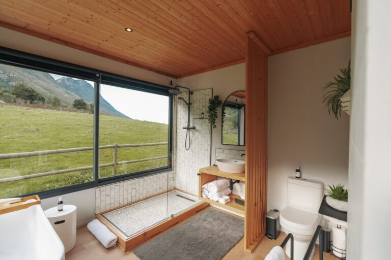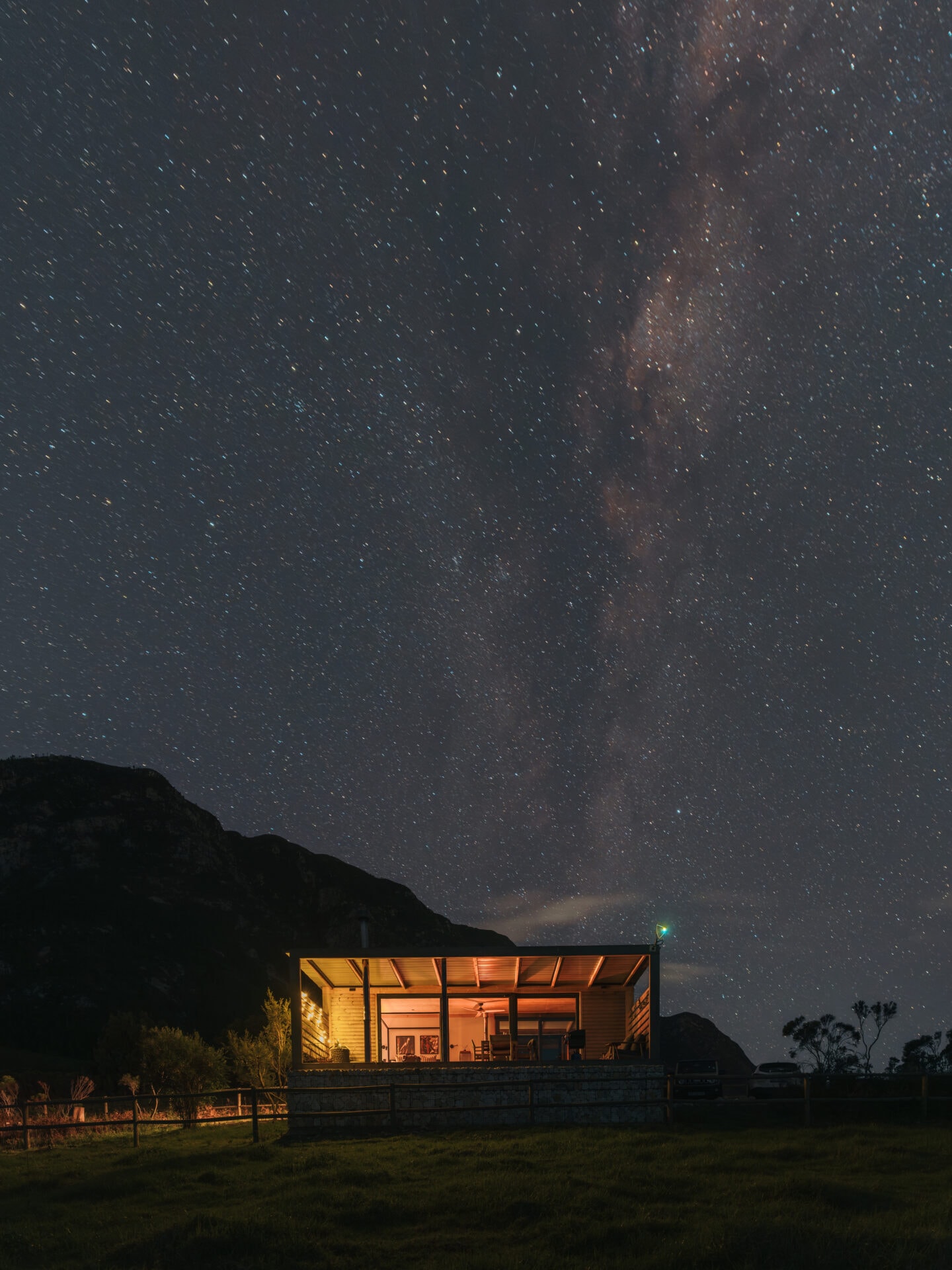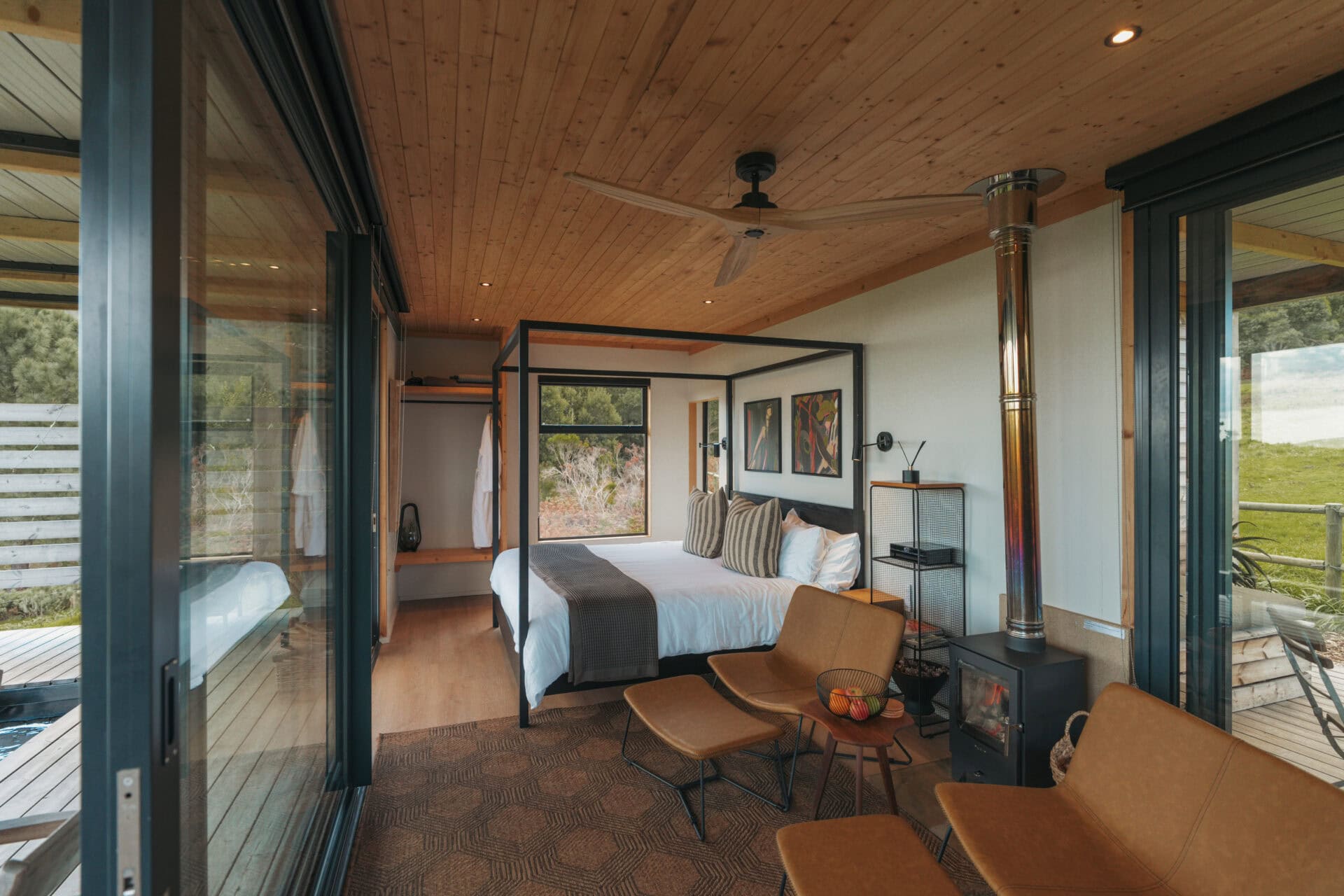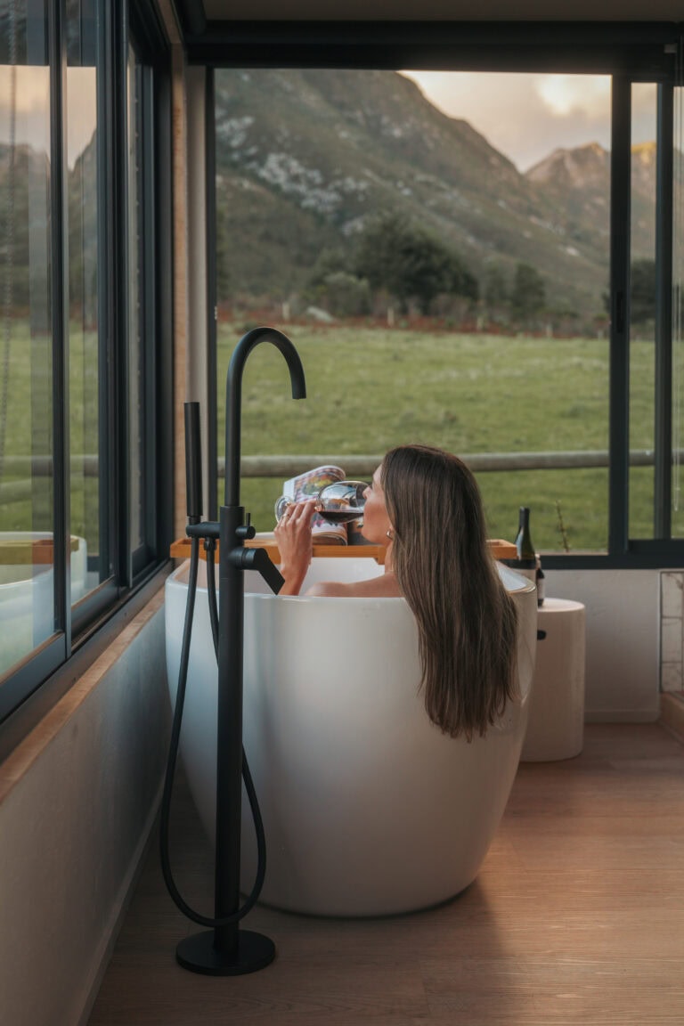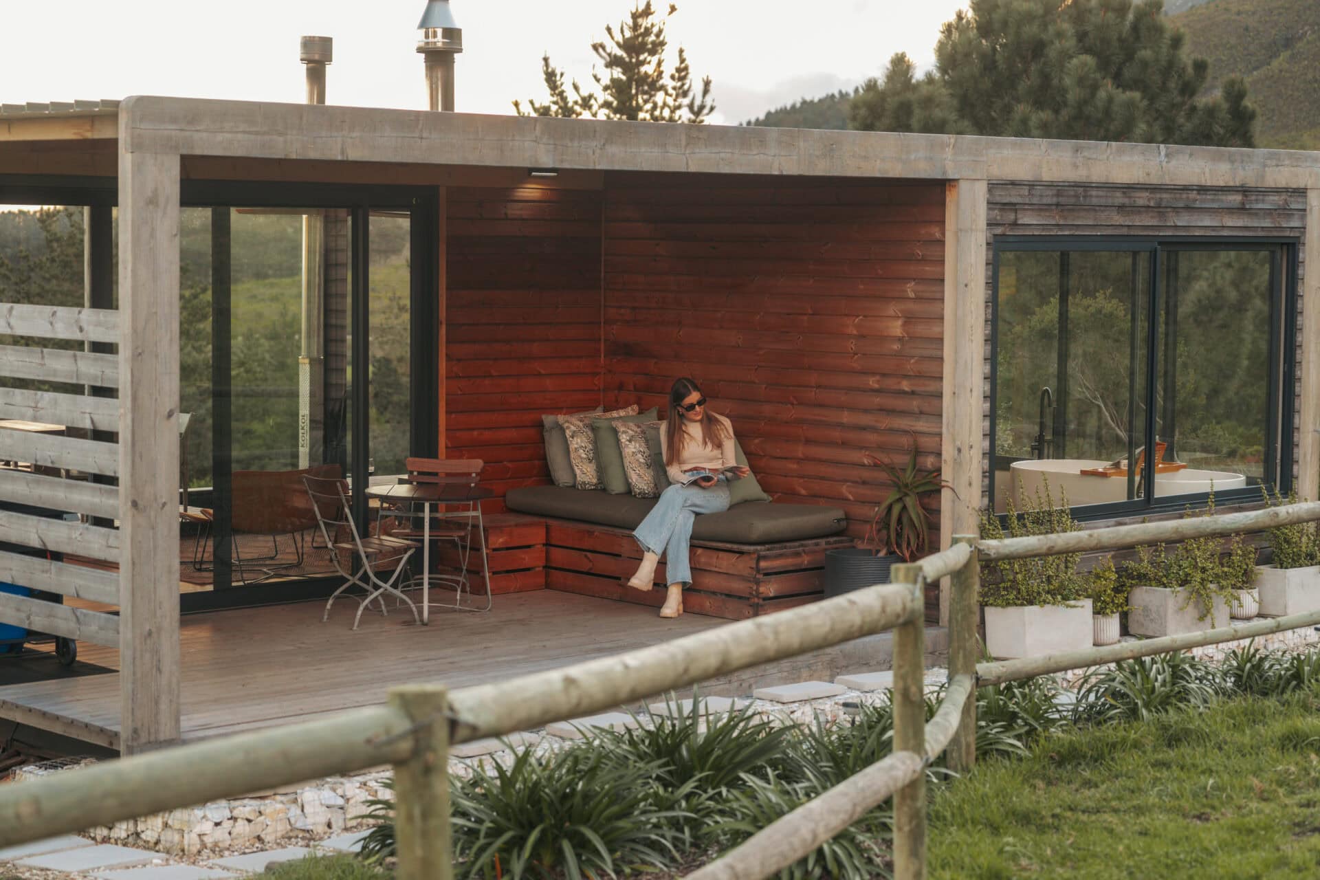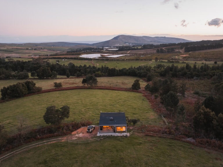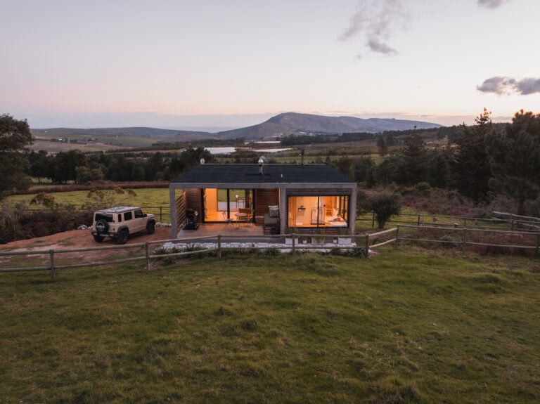 Tucked away on a peaceful stud farm in the heart of the Overberg, this private cabin is surrounded by wide-open paddocks, fresh country air and endless views, yet it’s just a 10-minute drive to some of the region’s top wine farms. With sweeping views from both the front and back decks, you’ll be spoiled for choice when it comes to sundowner spots. Inside, expect luxurious, modern interiors, cosy touches, and all the comfort you need for a relaxing countryside stay.