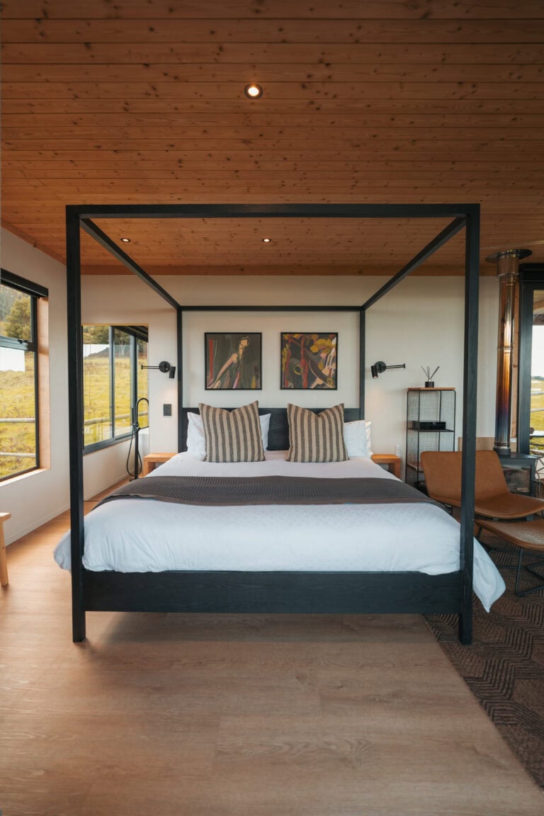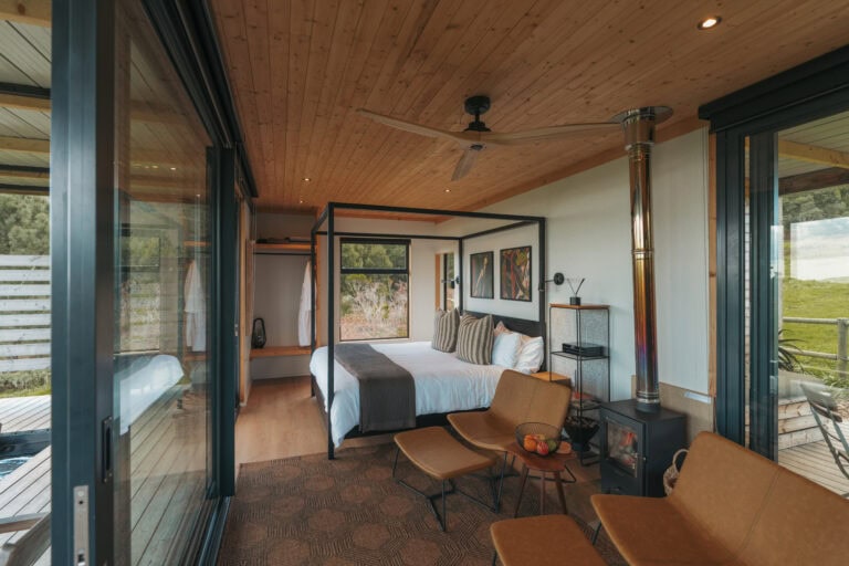 This spot is truly one-of-a-kind and our favourite of their three cabins. It’s the most private, set furthest away, and features super luxurious interiors – think leather armchairs, a king-sized four-poster bed, a bathroom with wraparound views and a bath big enough for two!