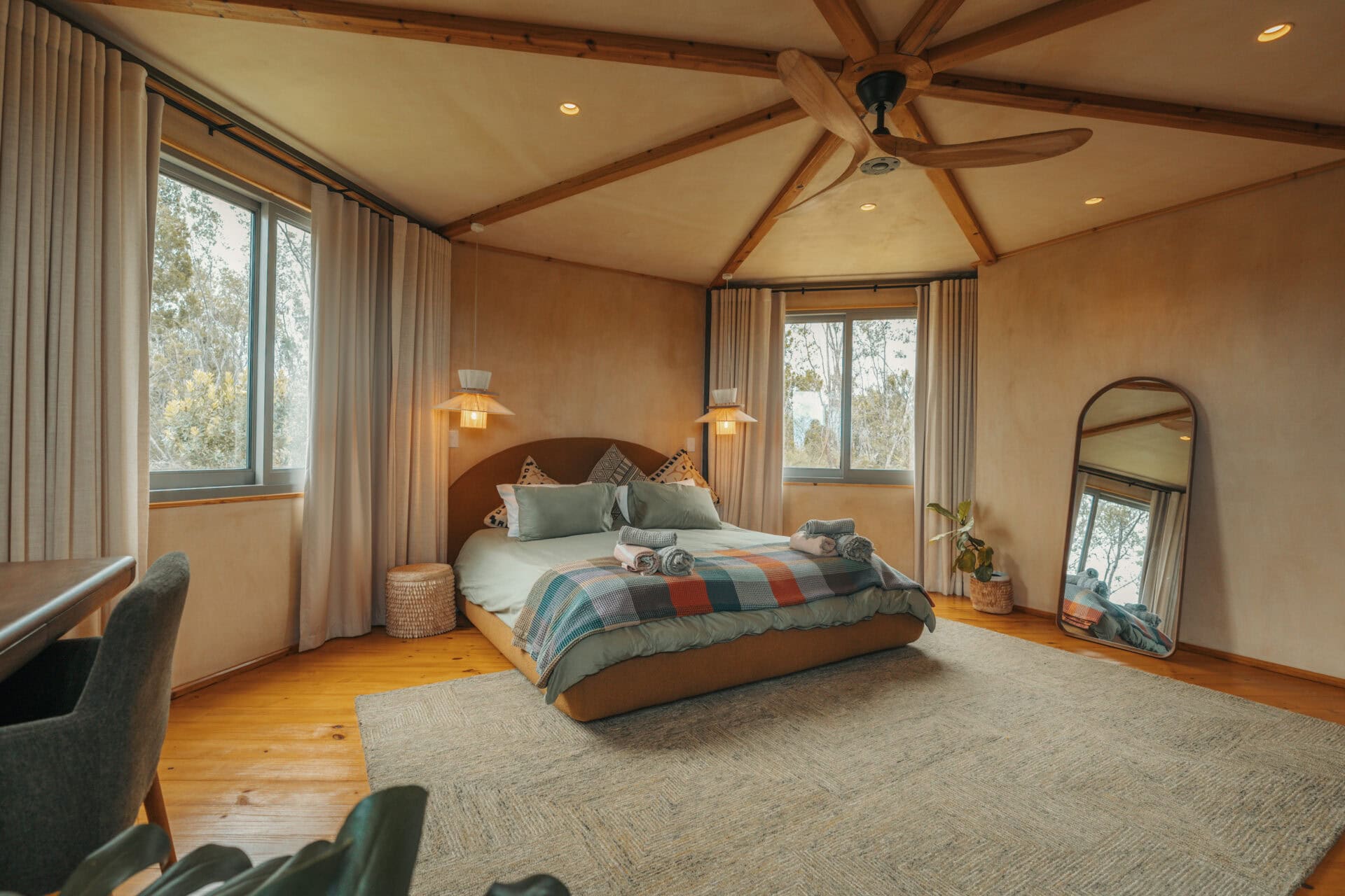 This place is a proper soul reset! The peace and quiet here is on another level, with nothing but forest sounds and birds chirping all day. The space feels so homey and warm, while the attention to detail is next level and of such high quality. The architecture is something we’ve never seen before, and sleeping with the skylight blind open, watching the stars was magical. We also loved the hike down to the rock pool, and ending the day with sundowners at the 360° viewpoint – those views are unreal!