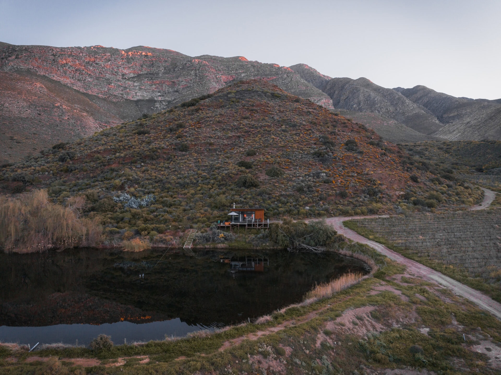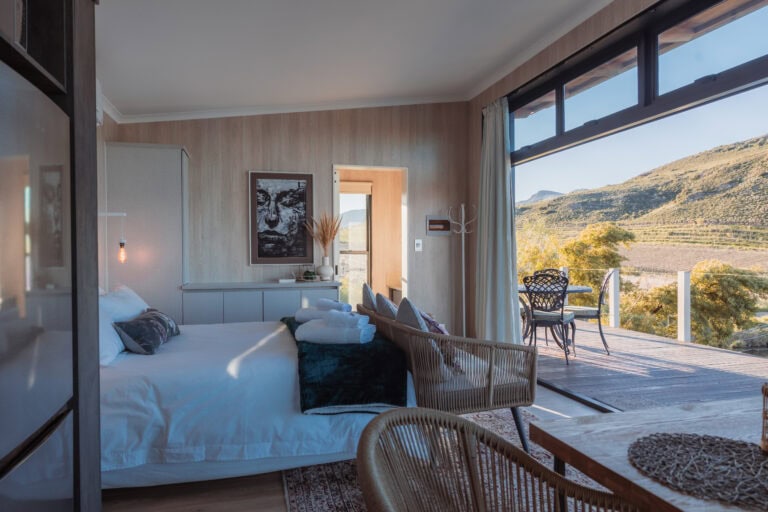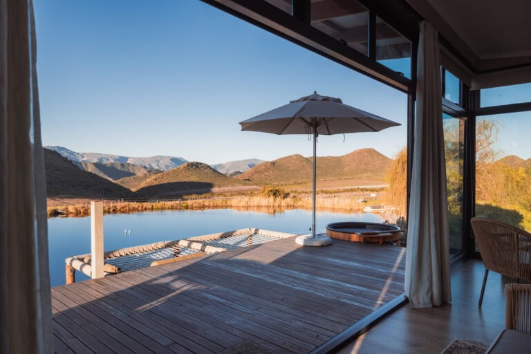 This location is truly one of a kind – perched above a dam in the orchards, Goedemoed Reflect offers stunning mountain views, incredible birdlife, and best of all, you have the entire dam to yourself!