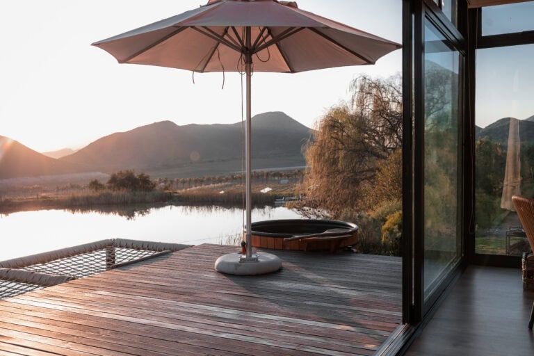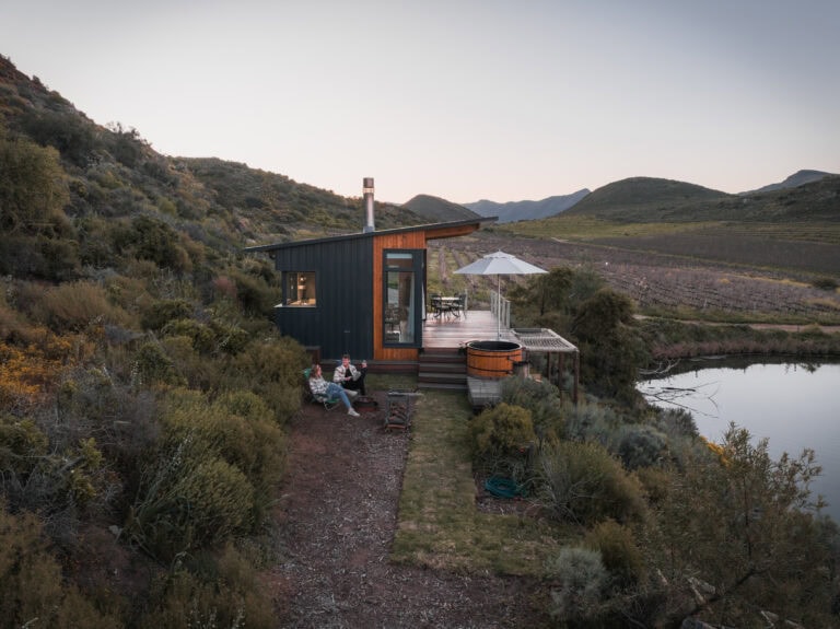 Located near Montagu, this cabin is perfect for a romantic getaway and comes with everything you could ask for: a hot tub, cargo nets, an indoor/outdoor shower, a fire pit, air conditioning and breathtaking views. There’s no better place to unwind and recharge!