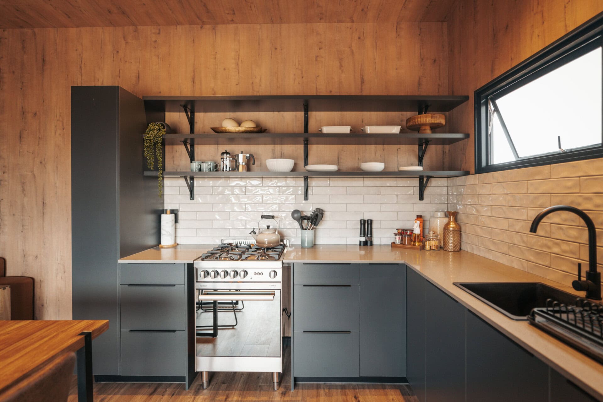 The bedroom also opens out onto the deck, offering breathtaking mountain views right from your bed. The queen sized bed comes with quality linen and there are some really fun hot water bottles for winter! There is also a dressing table for getting ready and plenty of storage space.