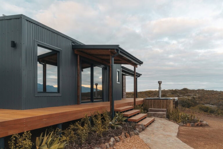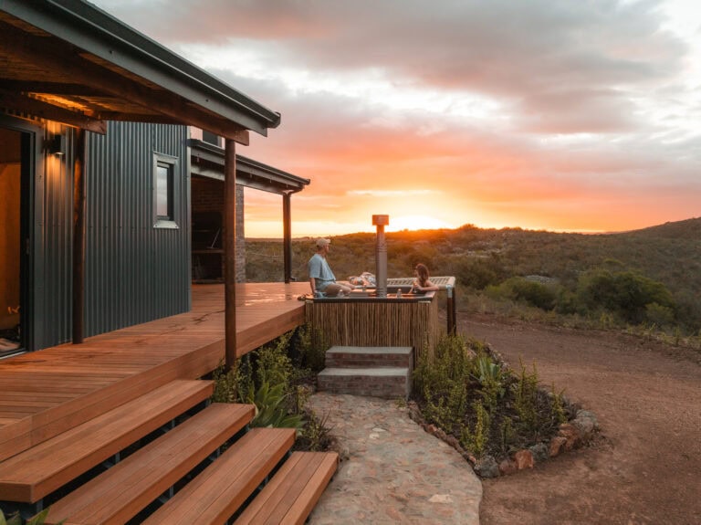 Surrounded by canola fields, rolling mountain ranges, ostriches and abundant birdlife, this eco-friendly cabin is the perfect stay, especially if you’re heading up the Garden Route to Knysna, Plettenberg Bay etc.