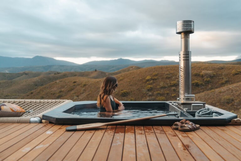 The bath and shower are located in the bedroom, with the toilet separate for privacy. The bath is located close to the window so you can soak in the views quite literally! And there’s an outdoor shower too if you prefer being even closer to nature.