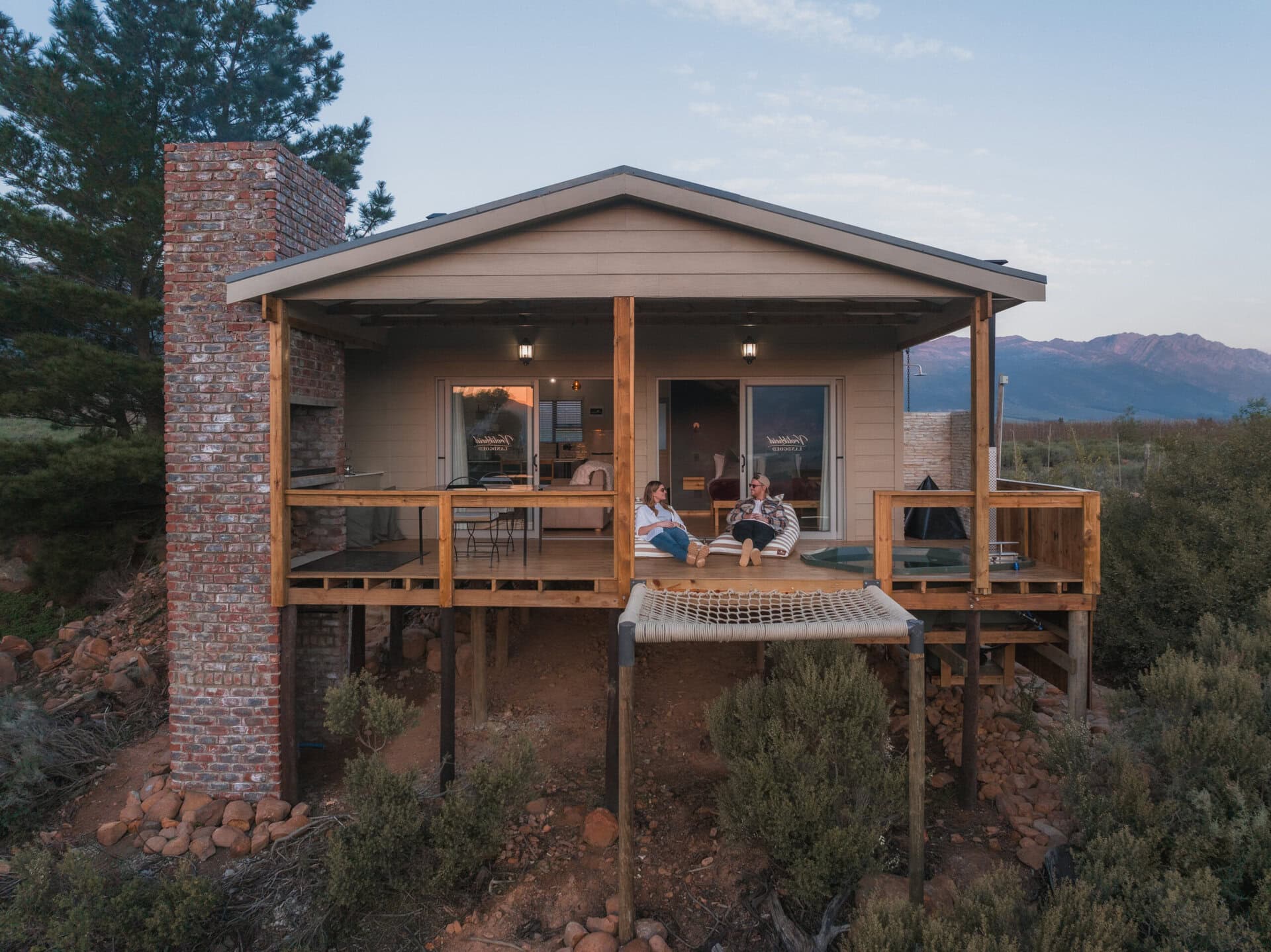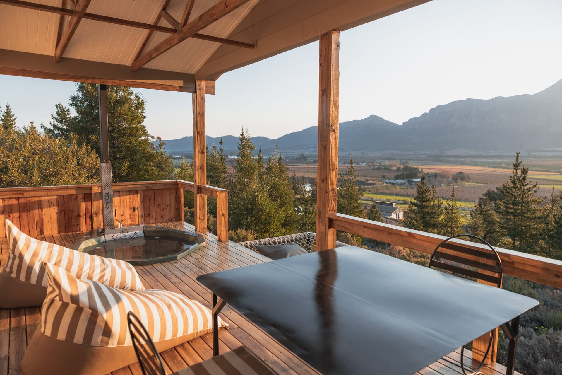 The cabin with it all! Just 90 minutes from Cape Town, it’s the perfect farm escape for two, offering panoramic mountain views, a cargo net, wood-fired hot tub, bean bags, an outdoor bath and shower, pizza oven, braai, aircon, TV, high speed wifi, and so many thoughtful touches — ideal for a romantic weekend getaway or working remotely.