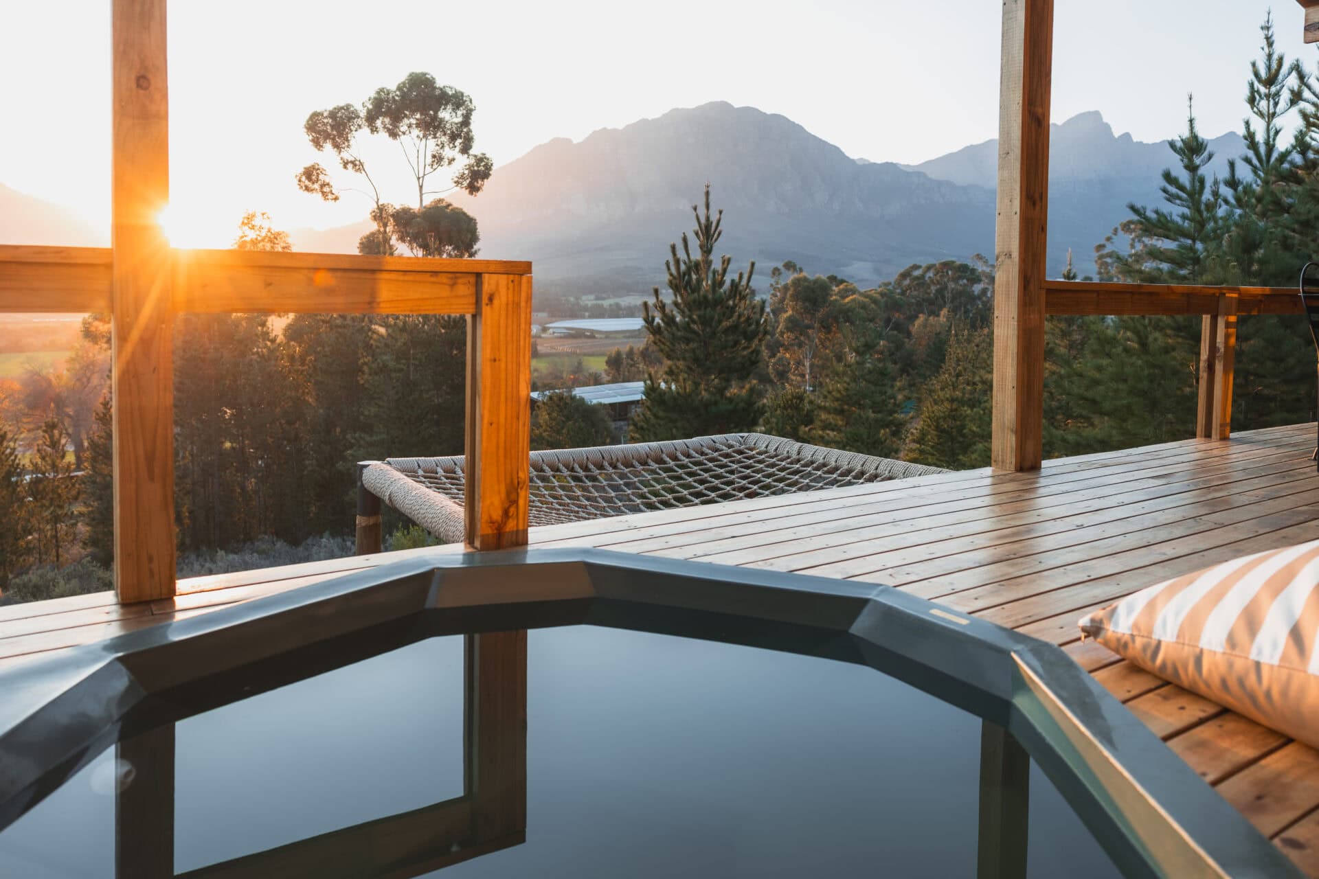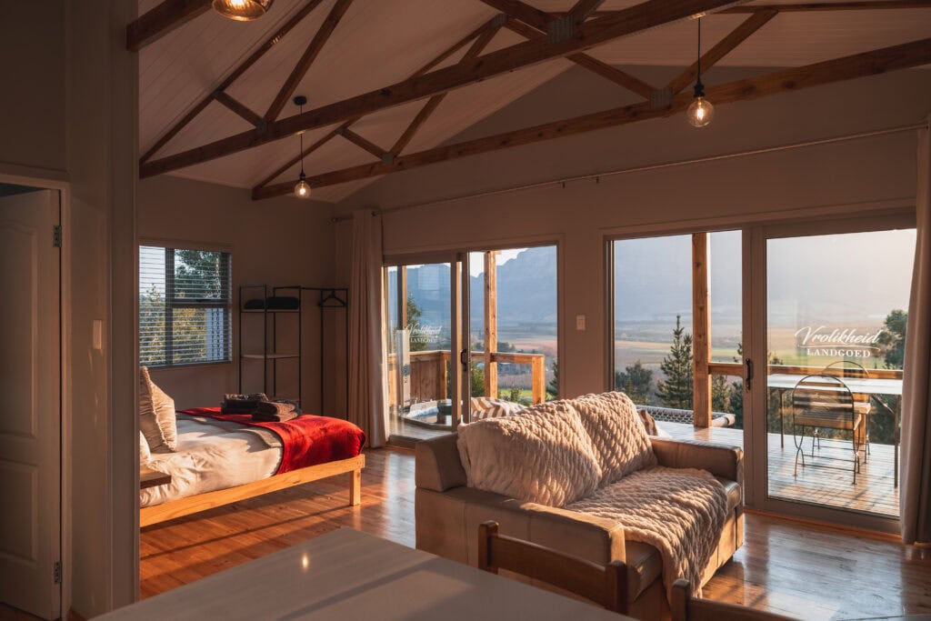 It’s also just a 10 minute drive into Tulbagh, perfect if you’re in the mood for wine tasting or grabbing a bite to eat. Spend your afternoons strolling through the orchards, exploring the farm on horseback or taking in the gorgeous mountain views from the cargo nets while sipping on their complimentary sherry.