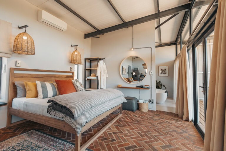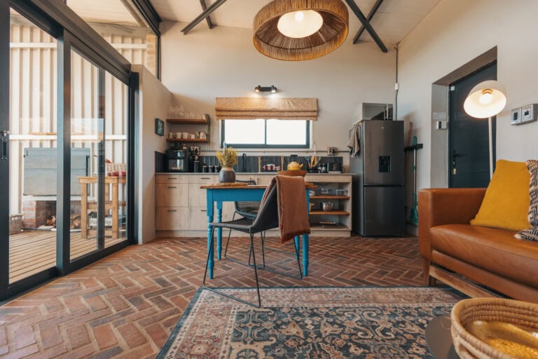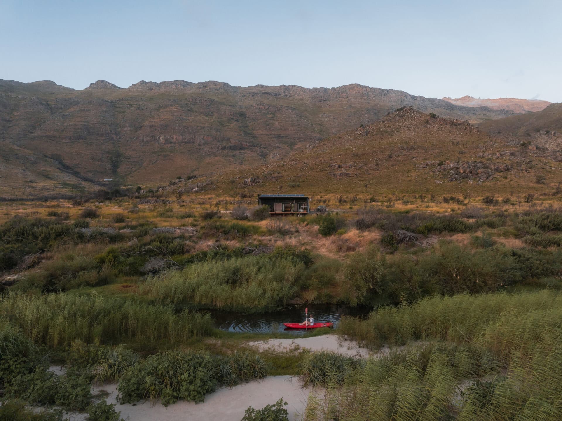 Jan Albert Pod is situated on the Breede River, less than 90 minutes from Cape Town. This modern, luxurious and super spacious cabin is perfect for a romantic getaway or if you’re in need of a break but don’t want to venture too far! With direct river access and a canoe, you can spend your days on the water, followed by evenings braaing and unwinding in the wood-fired hot tub.