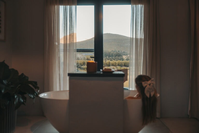 The peacefulness. We loved enjoying our morning coffee from the king-sized bed with the doors open, taking in the views and watching all the little birds come and go. It’s true luxury to have so much space in a cabin, both inside and out on the deck! We also loved the hot tub, luxurious interiors and popping down for a paddle on the Breede River.