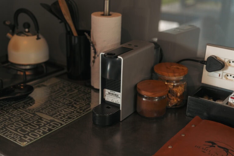 There’s a fully equipped kitchenette with a gas hob, whistling kettle, Nespresso machine, microwave, toaster, and fridge-freezer. Instant coffee, filter coffee, coffee pods, tea, sugar, milk, still water, salt and pepper, and braai seasoning are provided.