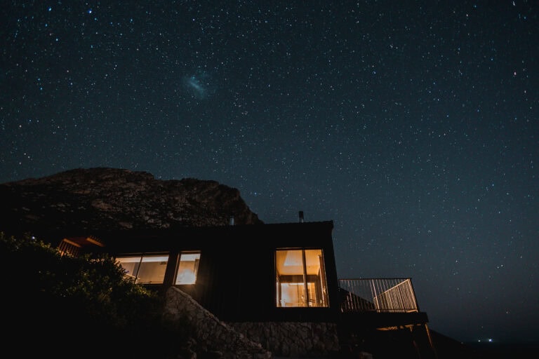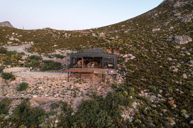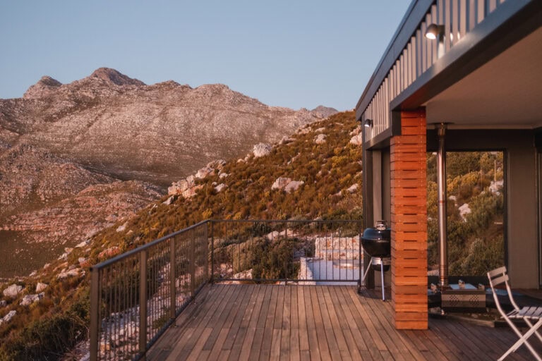 Perched high on the mountainside in Rooi Els, you’ll spot this four-sleeper eco cabin straight away! Just an hour’s drive from Cape Town, it’s the perfect destination for a spontaneous weekend getaway for couples and small families. Hike in the Kogelberg Nature Reserve, head down to the beach for a swim or just unwind and enjoy the views from the wood-fired hot tub or cargo nets.