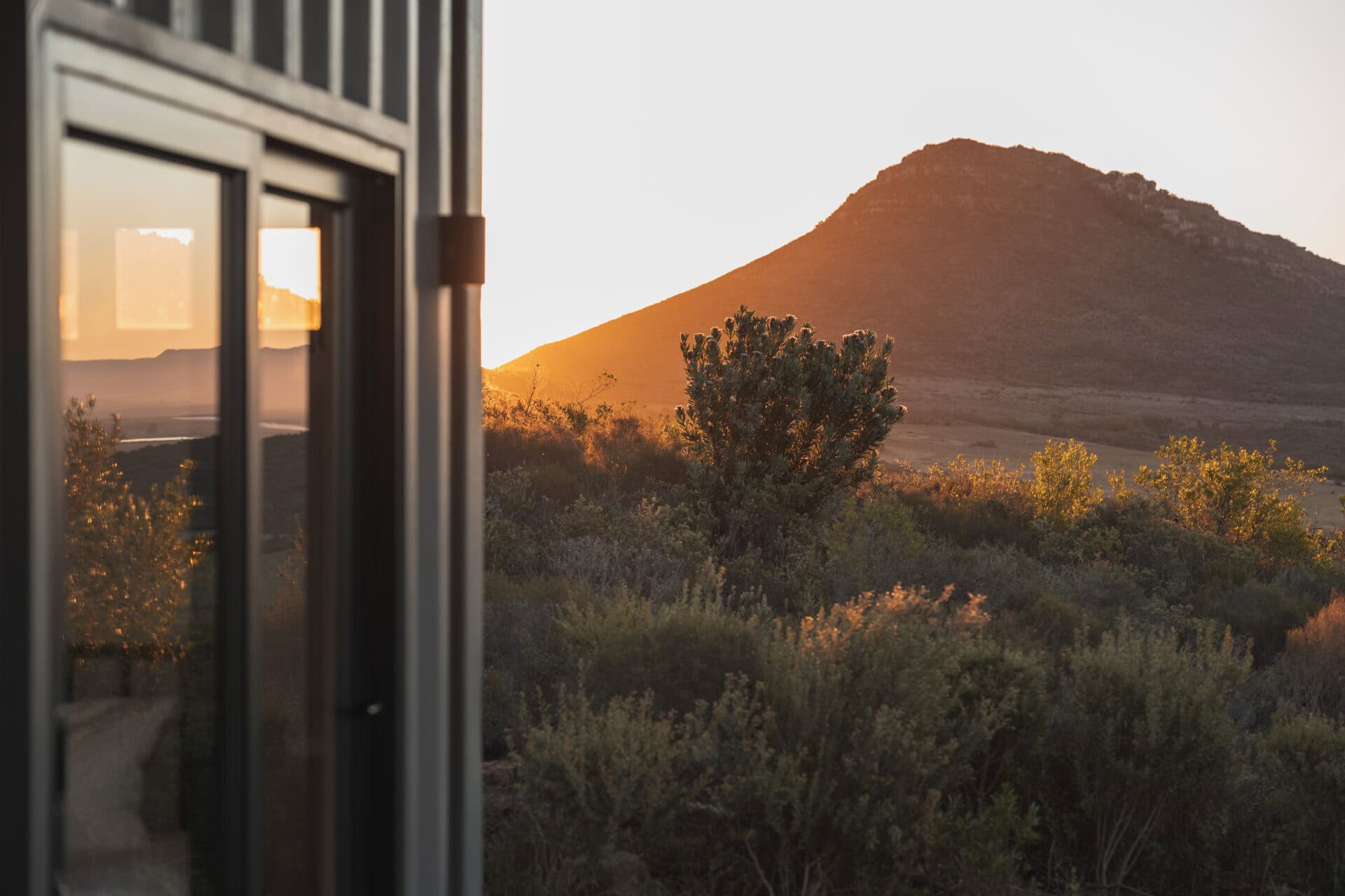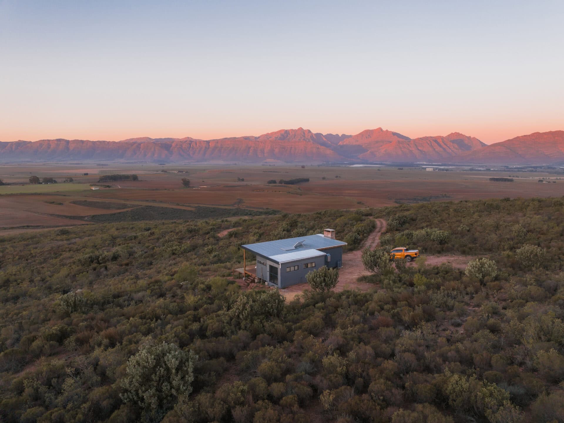Perched against the mountain in Porterville, surrounded by proteas and overlooking rolling wheat fields, this upcycled, off-grid container home offers a peaceful escape and is the perfect spot to reconnect with nature and your loved ones.