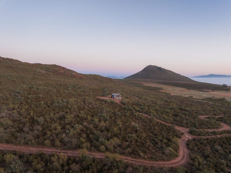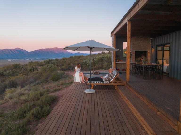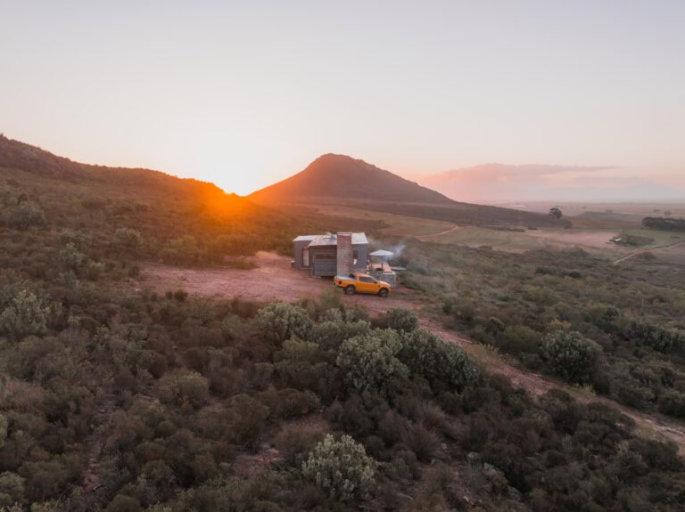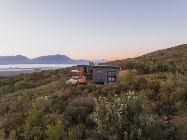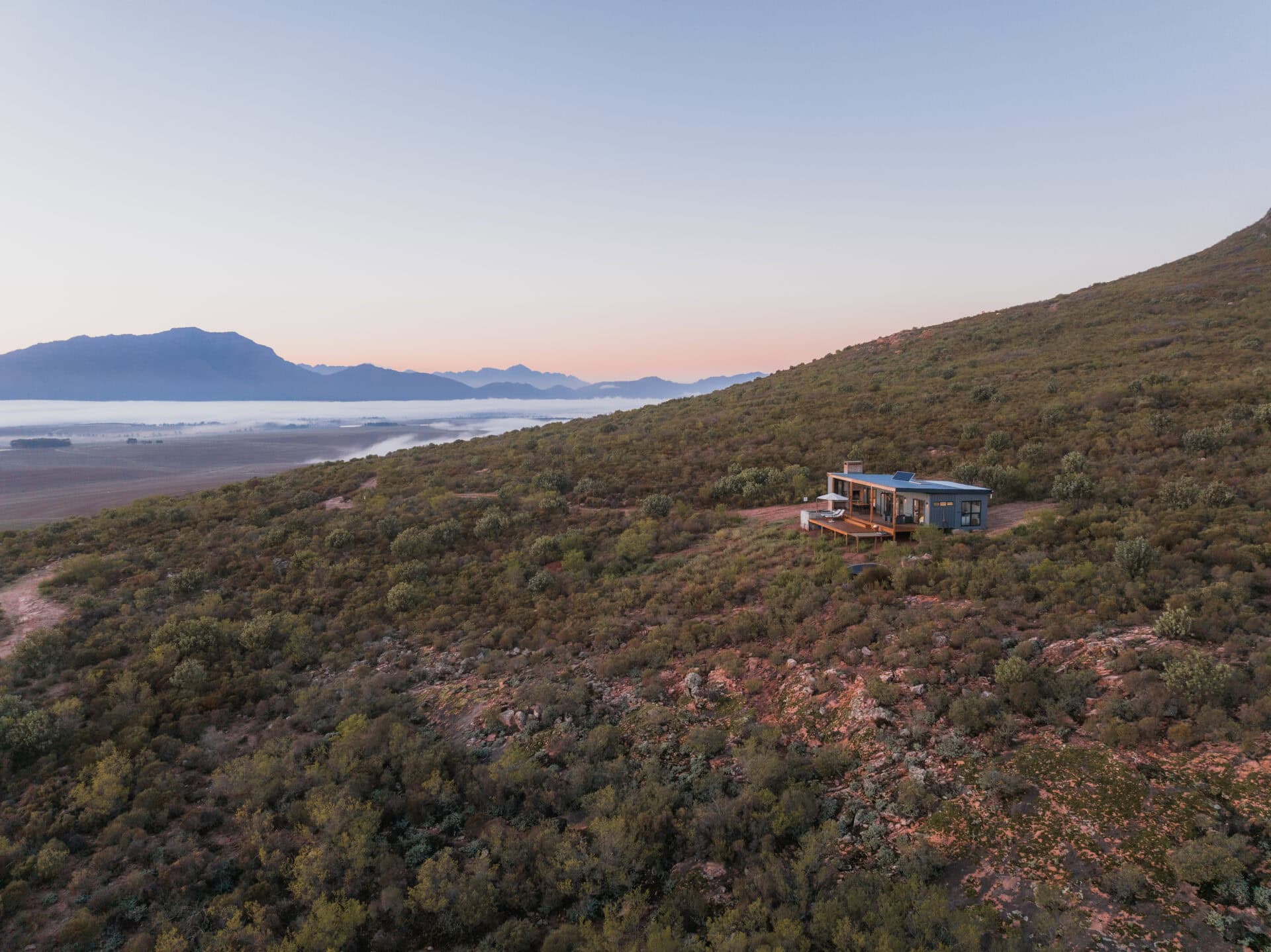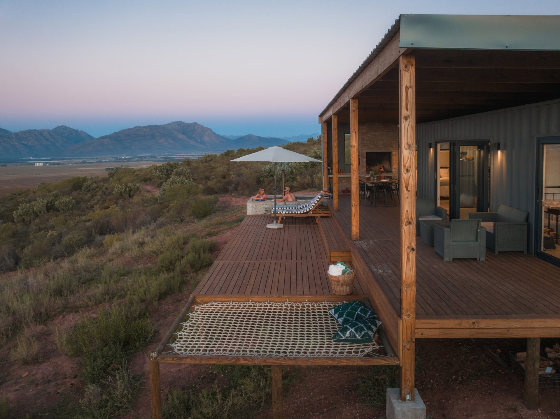 Perched against the mountain in Porterville, surrounded by proteas and overlooking rolling wheat fields, this upcycled, off-grid container home offers a peaceful escape and is the perfect spot to reconnect with nature and your loved ones.