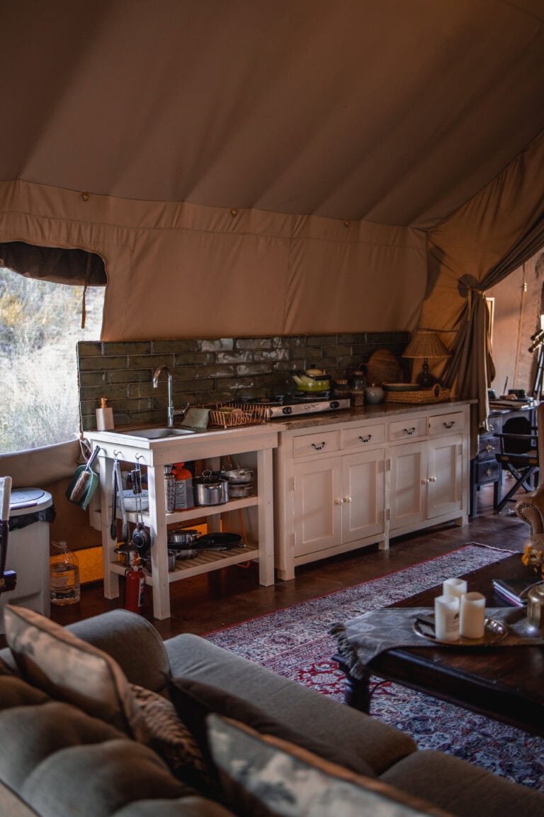 - The tent is completely off-grid, running solely on solar and gas. There are no electrical appliances or plug points, just a USB charger for your phones so leave your hairdryer, laptop charger etc at home