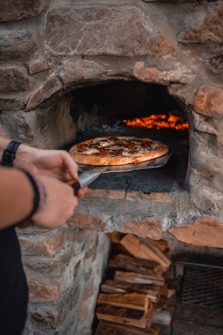 There’s a fully-equipped kitchenette with a Le Creuset whistling kettle, gas hob, and a fridge/freezer. Instant coffee, tea, sugar, olive oil, salt and pepper, and some spices are provided. Don’t forget to pack your pizza ingredients as you’ll want to make use of the pizza oven. There is also a potjie pot and jaffle iron.