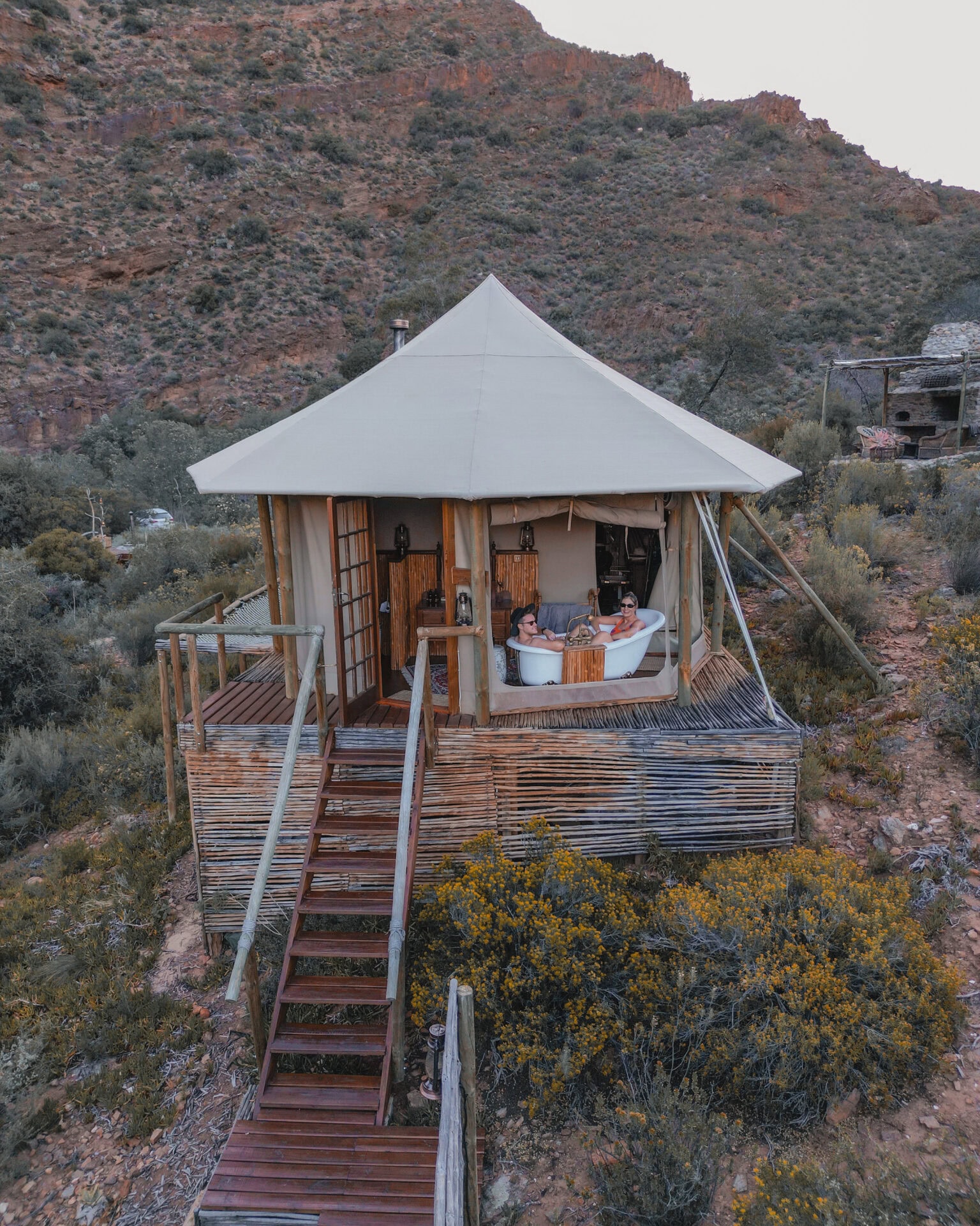 Looking to completely disconnect? Leopard’s Kloof is one of the most secluded stays in South Africa. Tucked away deep in the mountains, 30 km outside of Montagu, this luxurious glamping stay will make you feel like an explorer from a past time! With no signal or WiFi, you can truly disconnect from the world and reconnect with nature.