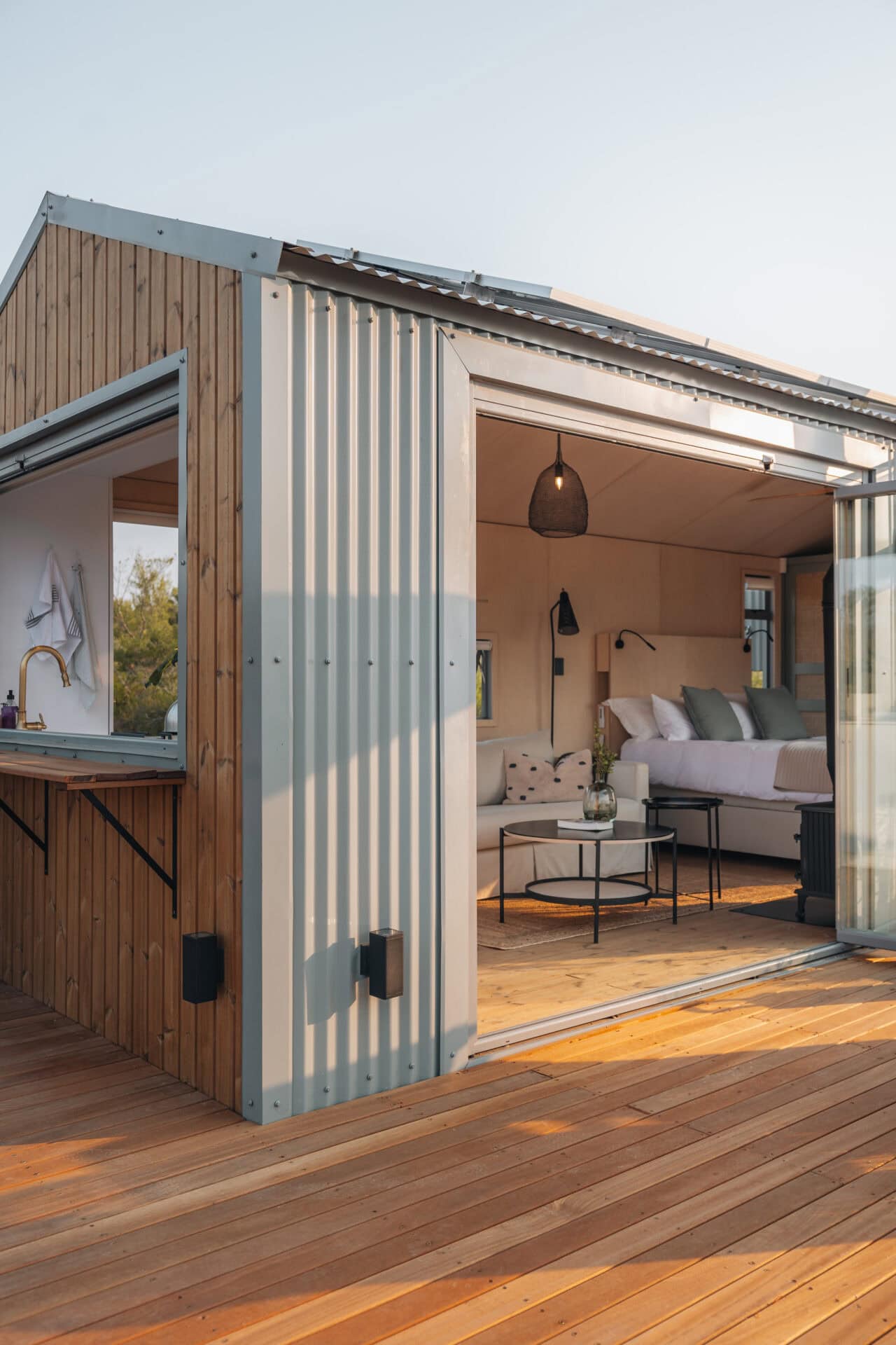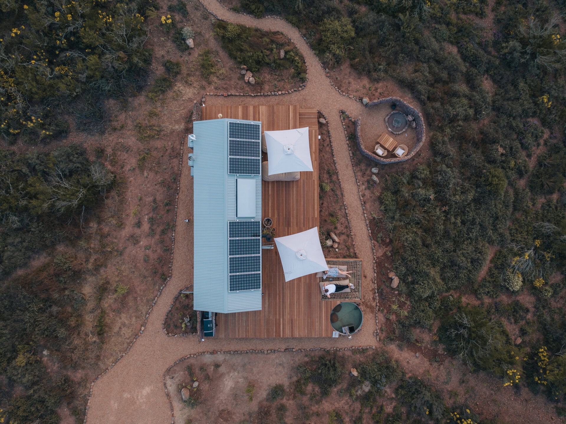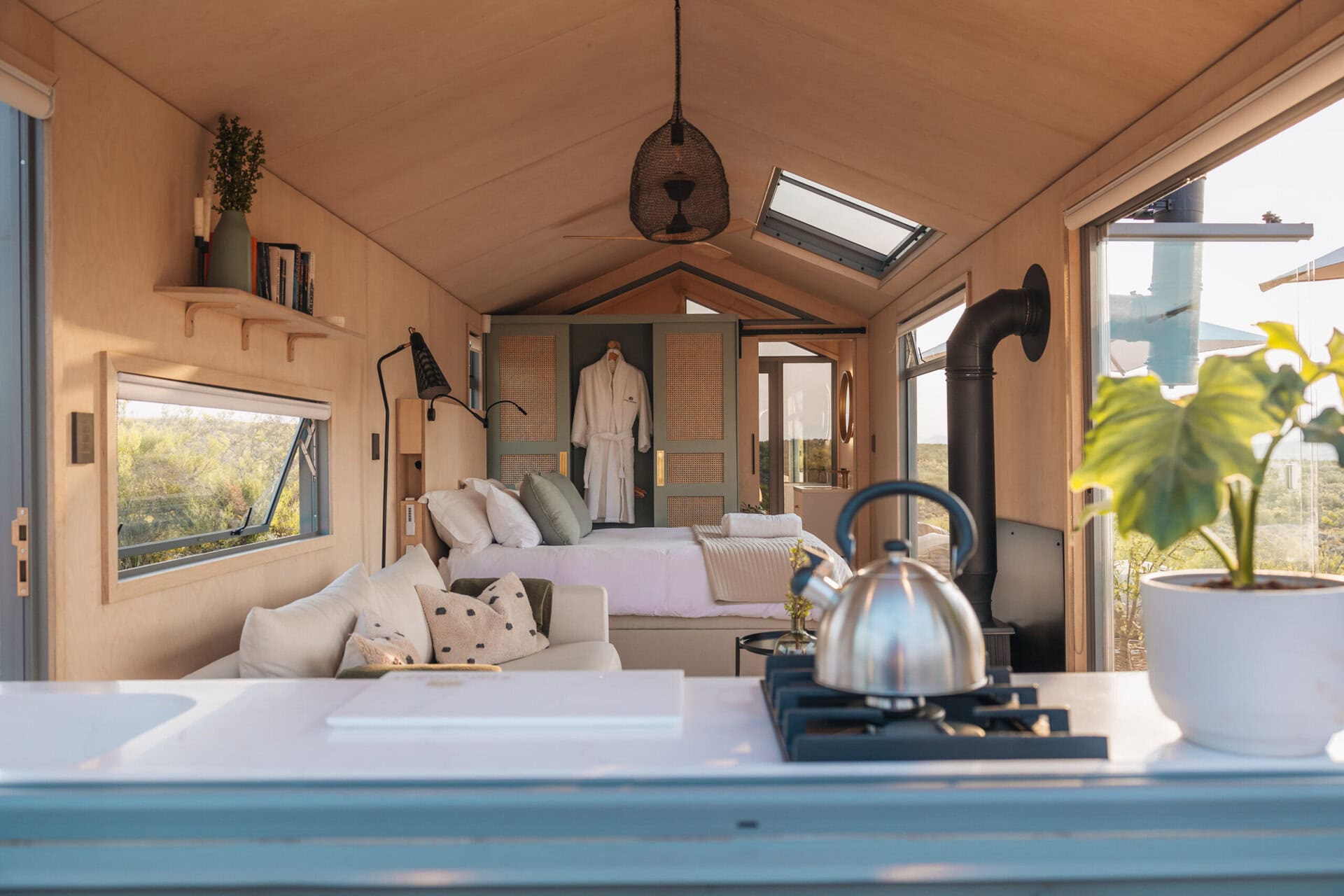 This eco cabin offers uninterrupted views, a wood-fired hot tub, cargo net, outdoor bath, and so much more! Completely private, yet just a 15-minute drive into Robertson and the valley’s world-class wine farms, it’s the perfect place to slow down, breathe deeper, and look up at the moon.