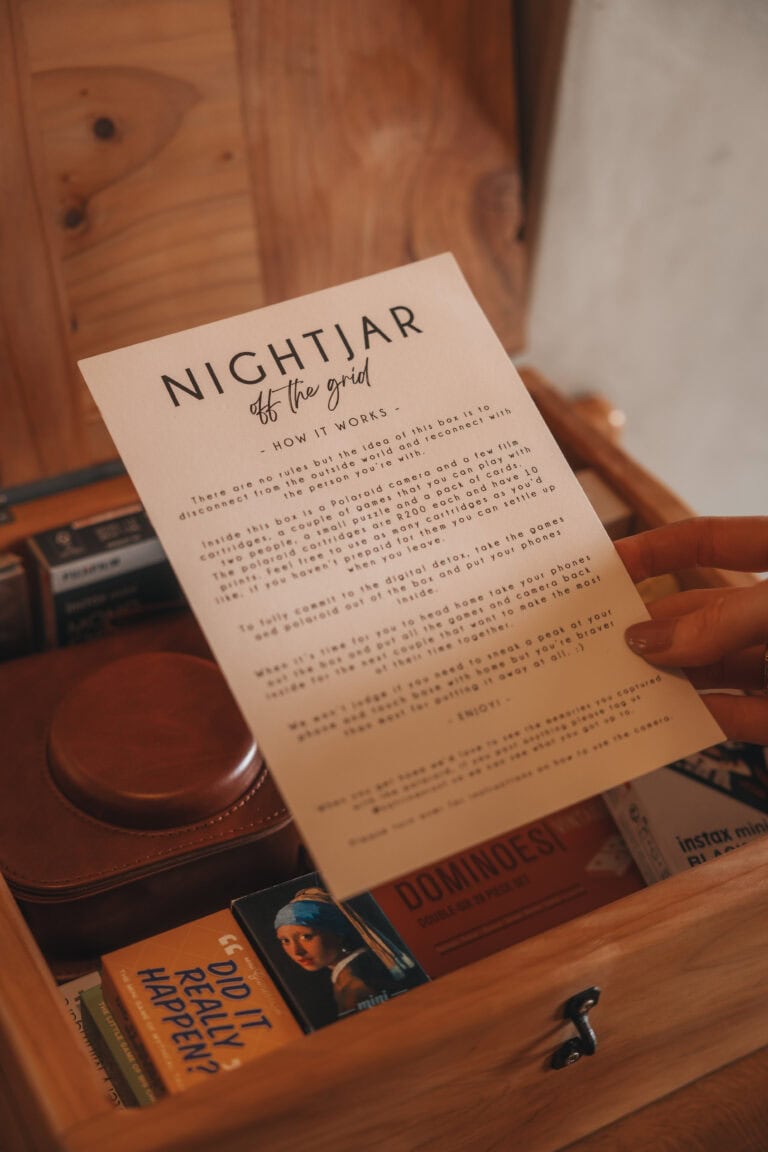There’s so much to explore on the farm — it truly feels like you’re in the middle of nowhere, completely surrounded by nature, with fishing, birdwatching, forest walks, and canoeing all right on your doorstep. But our favourite part was the disconnect box — something we’d never seen at a cabin before. Locking our phones away and spending time together with board games, puzzles, and an Instax camera was the kind of reset we didn’t know we needed.
