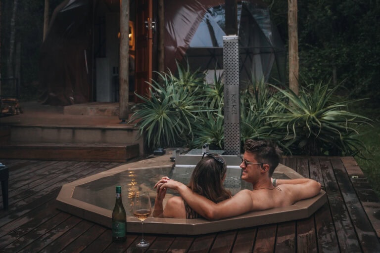 The perfect place to truly unplug! Tucked away at the base of a koppie on a trout farm, three hours from Johannesburg, this unique glamping dome for two is all about slowing down and reconnecting with nature, yourself and each other. With no signal, limited Wi-Fi, and a “disconnect box” to lock away your phone, you’ll swap scrolling for stargazing, stunning views, and hot tub chats.
