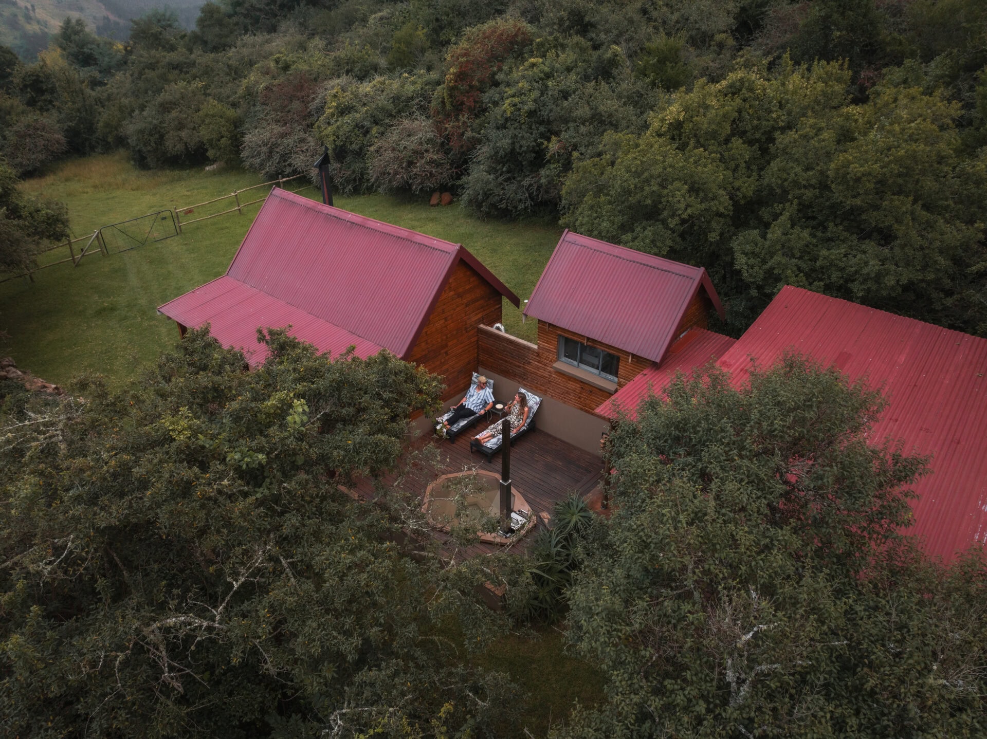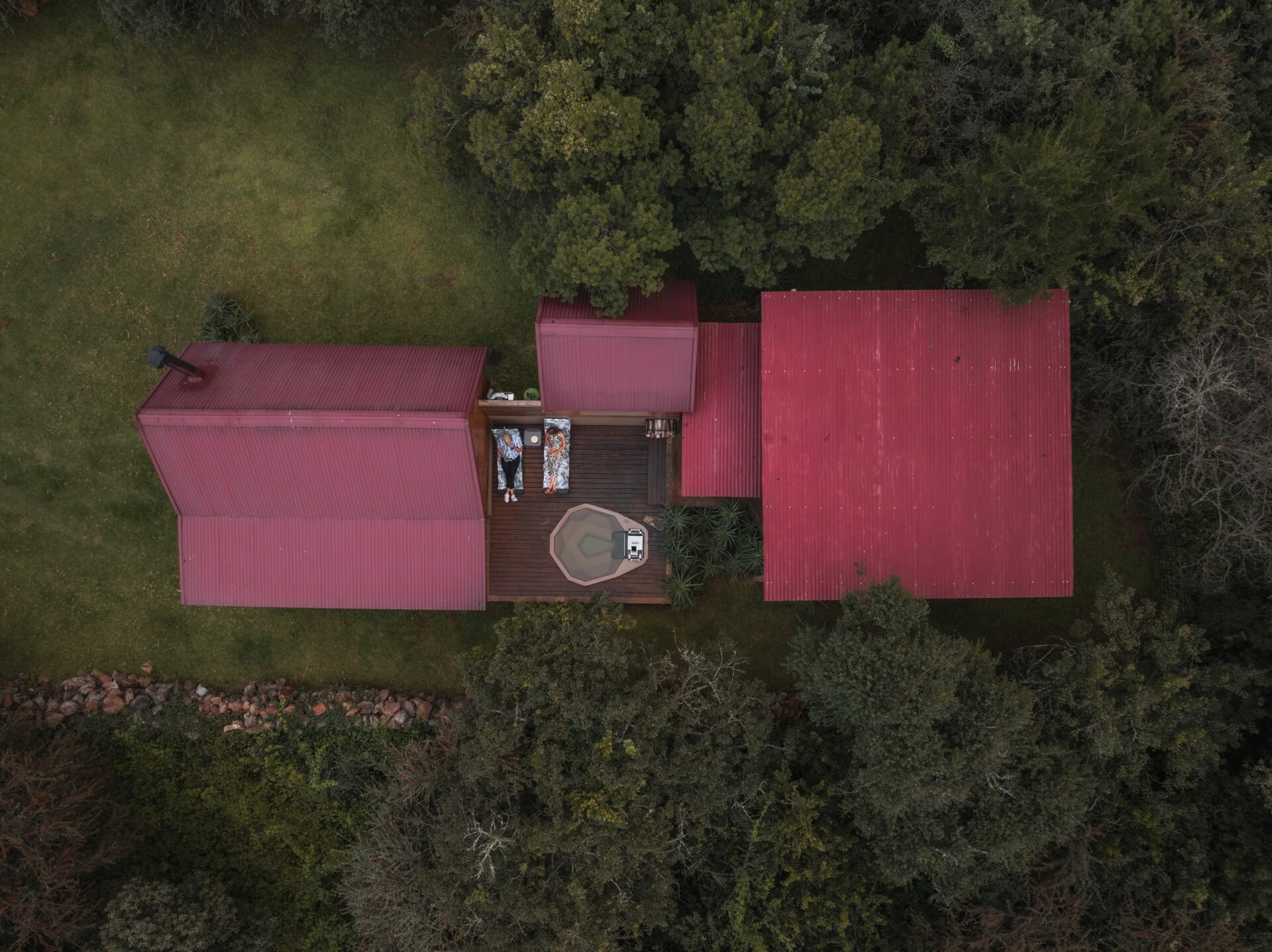 The outdoor deck comes with two sun loungers and a KolKol wood fired hot tub – perfect for stargazing or cooling off on warm days. There’s also a covered section of deck just outside the kitchen with a gas braai and a bench seat overlooking the garden and views.