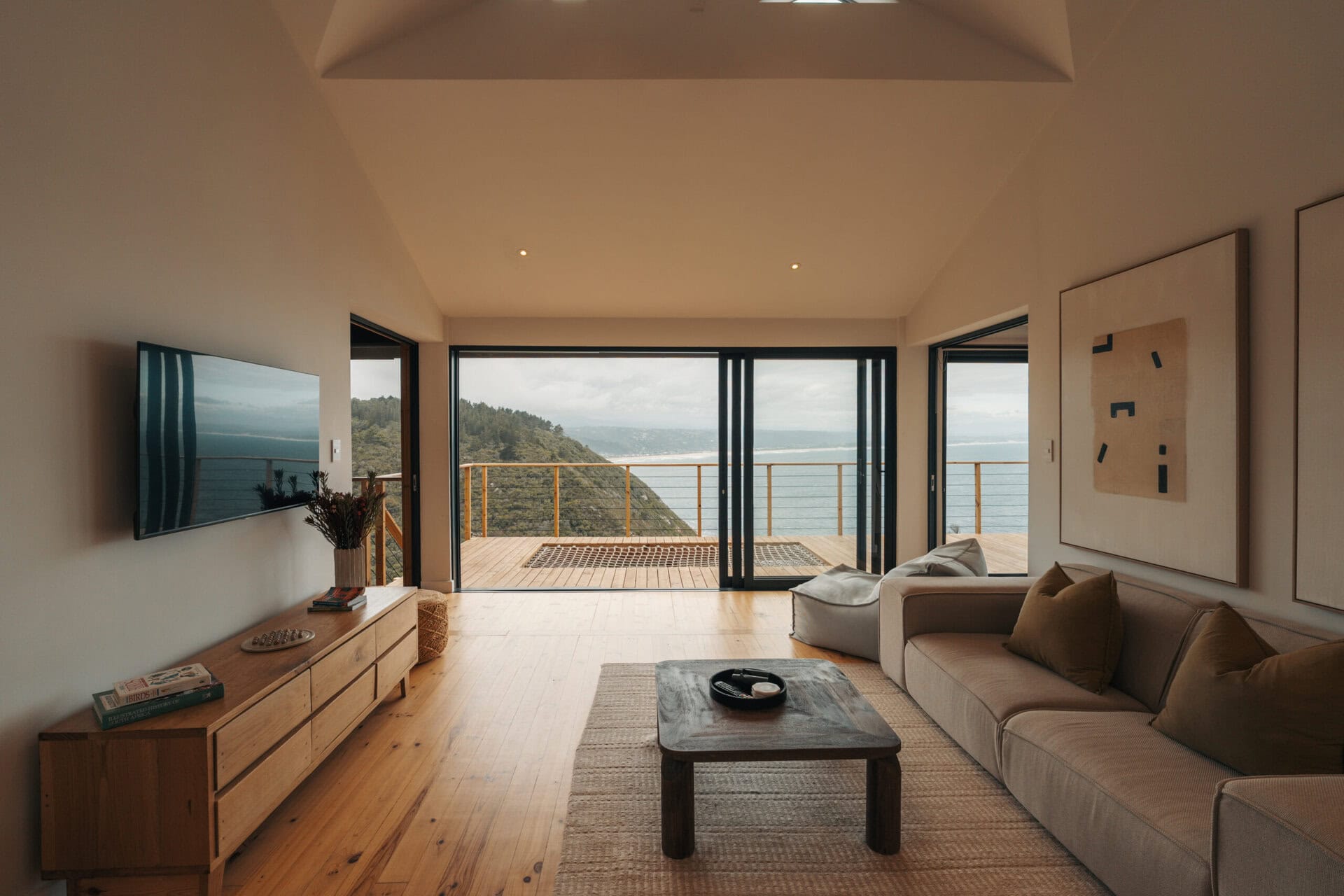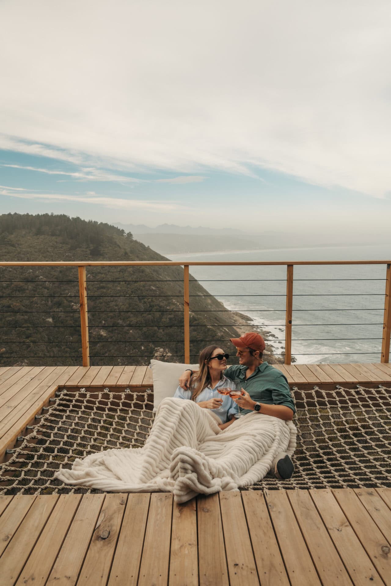 No surprises here, the name says it all! Perched high on a sea cliff, this is one of those stays where the view completely takes over. Think endless ocean, waves crashing below, and sunrises you’ll actually want to wake up early for. Located in Ballots Bay Nature Reserve along the Garden Route, this four-sleeper is made for pausing, resetting, and soaking up that calm ocean energy, with a hot tub and cargo net to enjoy it all from.