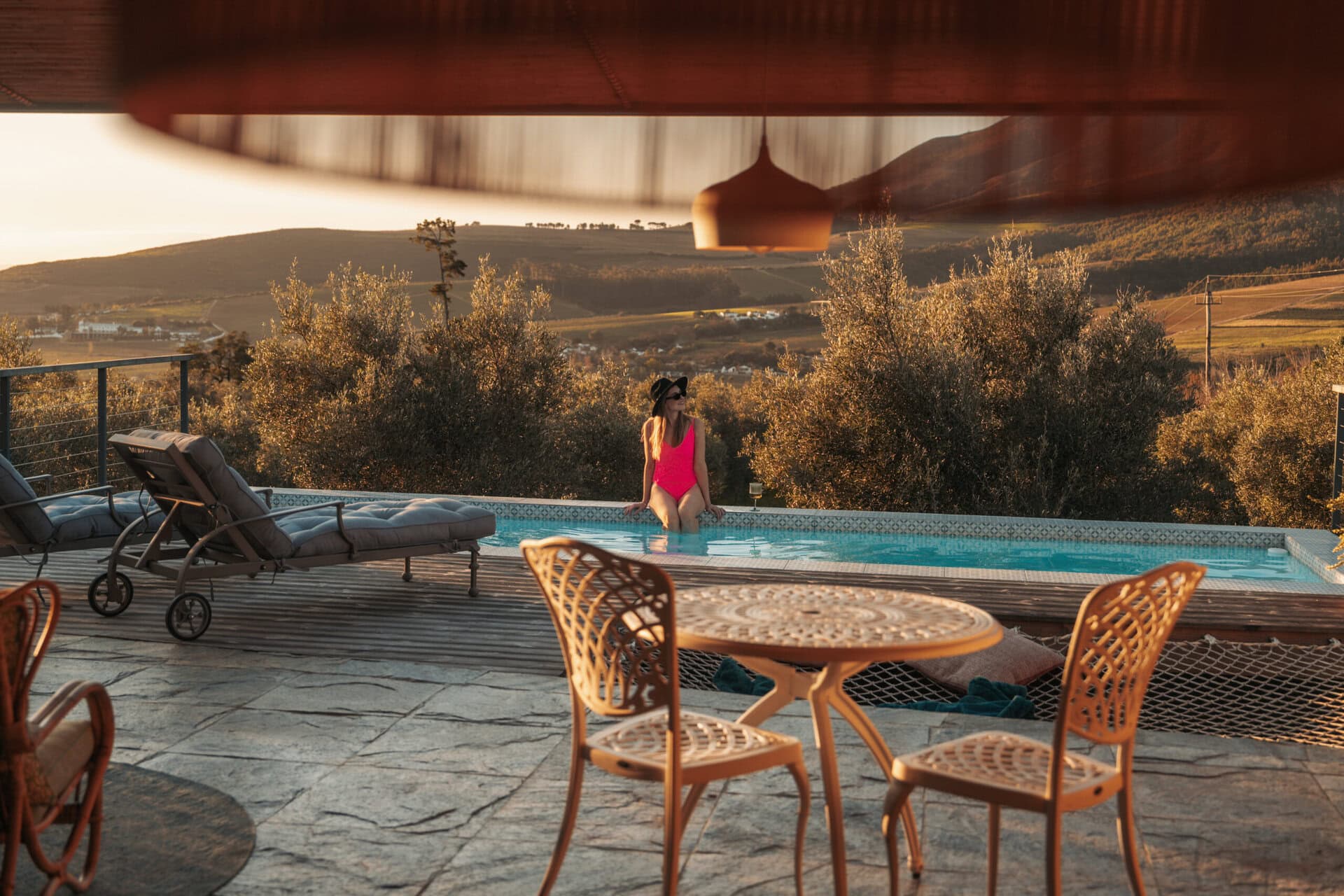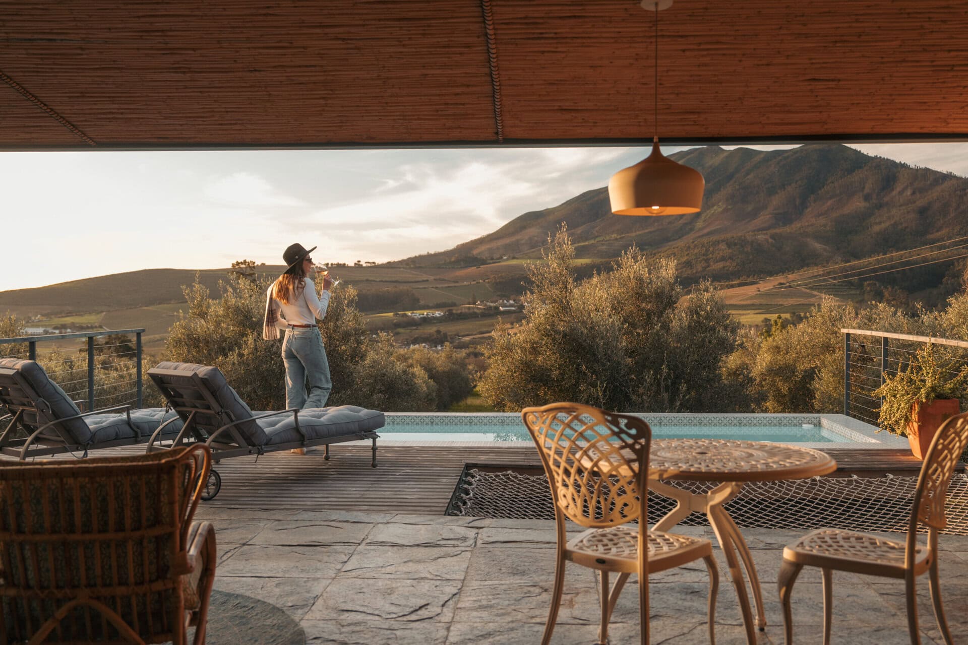 Set on an olive farm in Wellington, just an hour from Cape Town, it’s surrounded by olive trees, breathtaking mountain views, and incredible hikes. Yet despite the peaceful setting, it’s just a 10-minute drive to wine farms and restaurants that make going out as tempting as staying in.