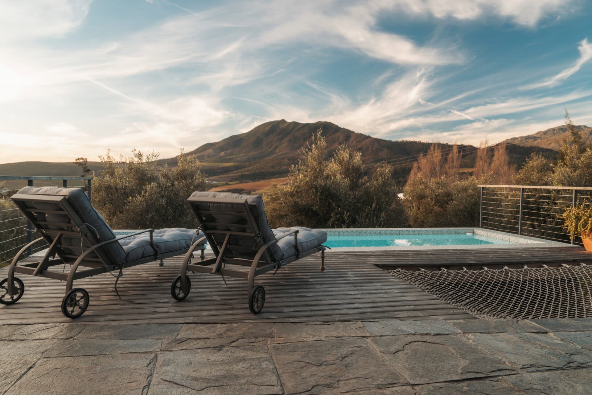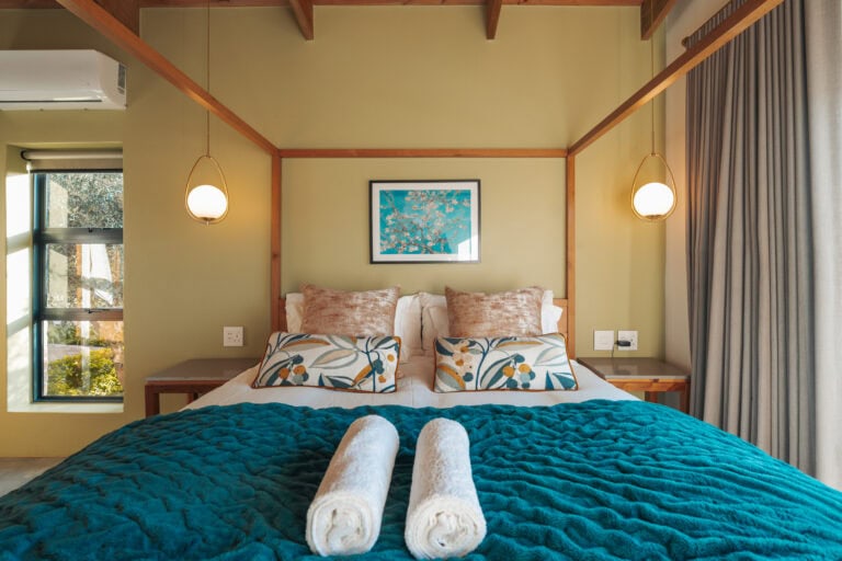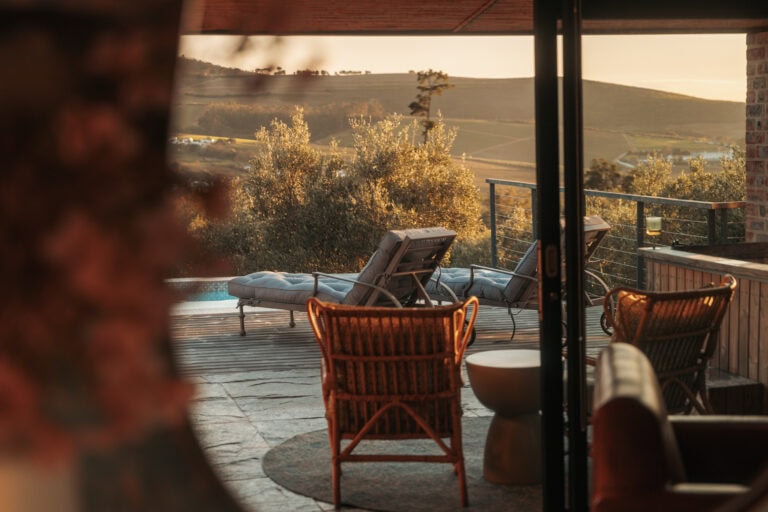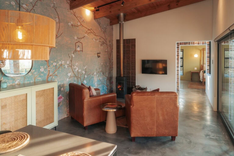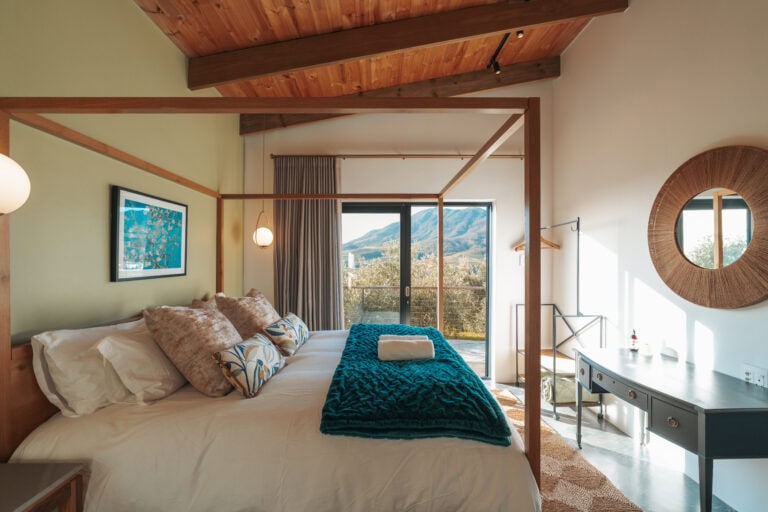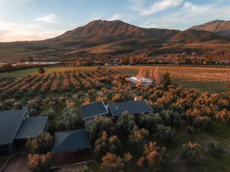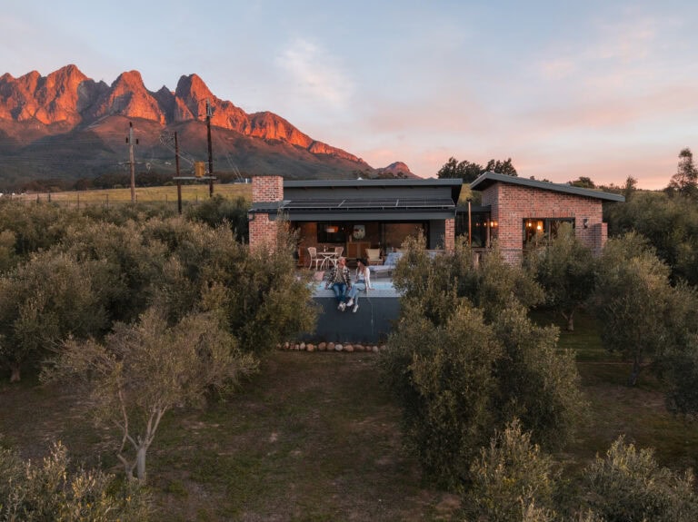 Set on an olive farm in Wellington, just an hour from Cape Town, it’s surrounded by olive trees, breathtaking mountain views, and incredible hikes. Yet despite the peaceful setting, it’s just a 10-minute drive to wine farms and restaurants that make going out as tempting as staying in.