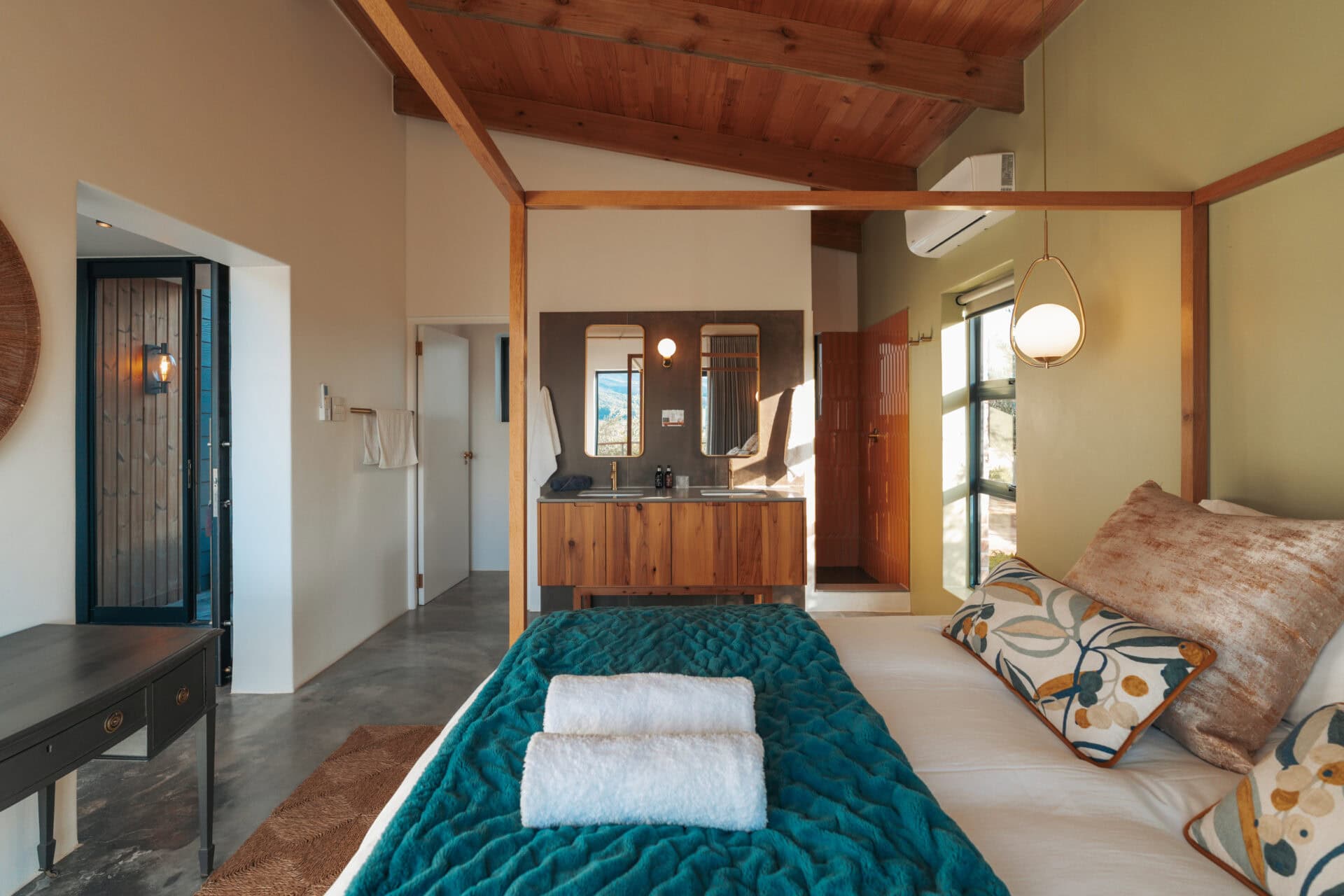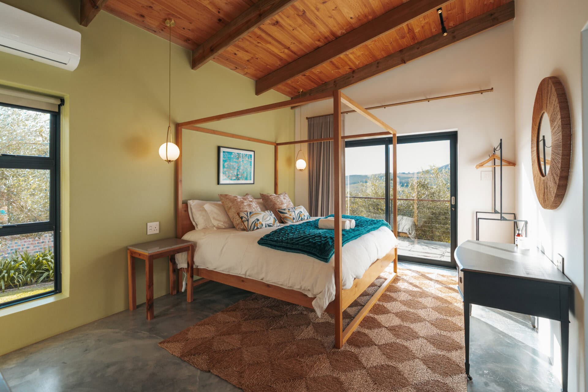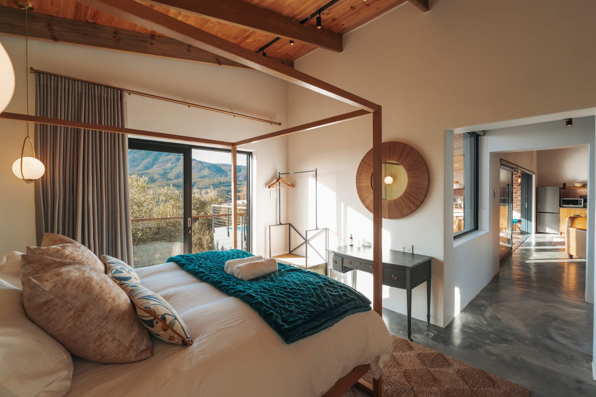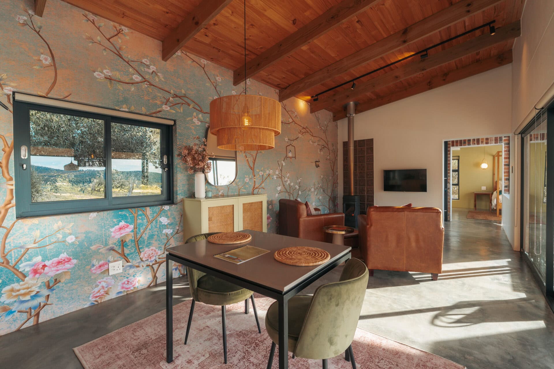 Set on an olive farm in Wellington, just an hour from Cape Town, it’s surrounded by olive trees, breathtaking mountain views, and incredible hikes. Yet despite the peaceful setting, it’s just a 10-minute drive to wine farms and restaurants that make going out as tempting as staying in.