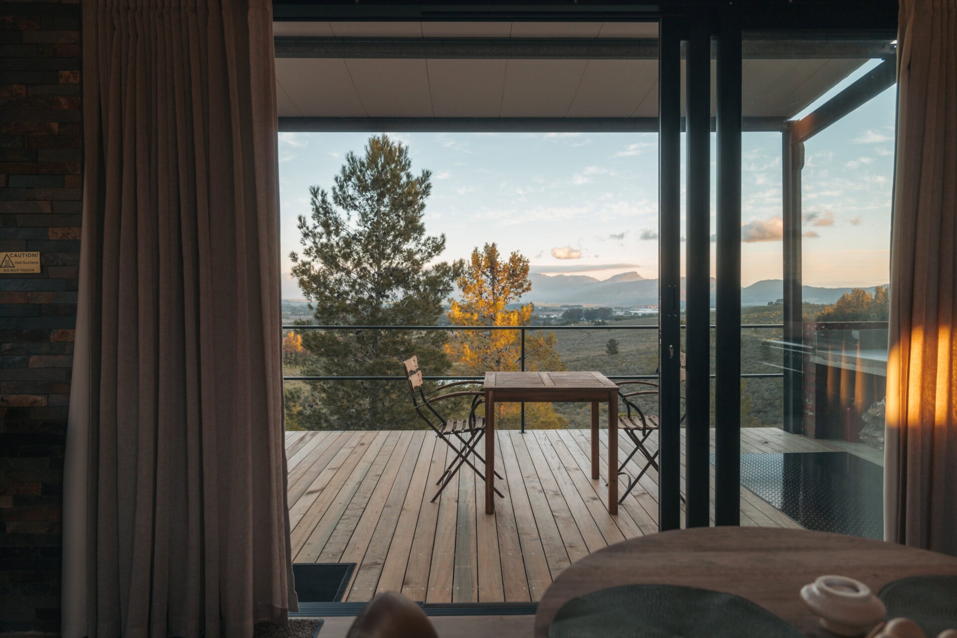 The perfect romantic stay or honeymoon getaway! This peaceful and luxurious cabin with a wood fired hot tub and breathtaking views is located on a quiet corner of a working fruit farm in Tulbagh. With thoughtful touches at every turn and the option of a romantic surprise, picnic or couples massage it’s perfect for celebrating those special occasions. Spend your afternoons strolling through the orchards or in the hot tub with a glass of wine, while fish eagles circle overhead.