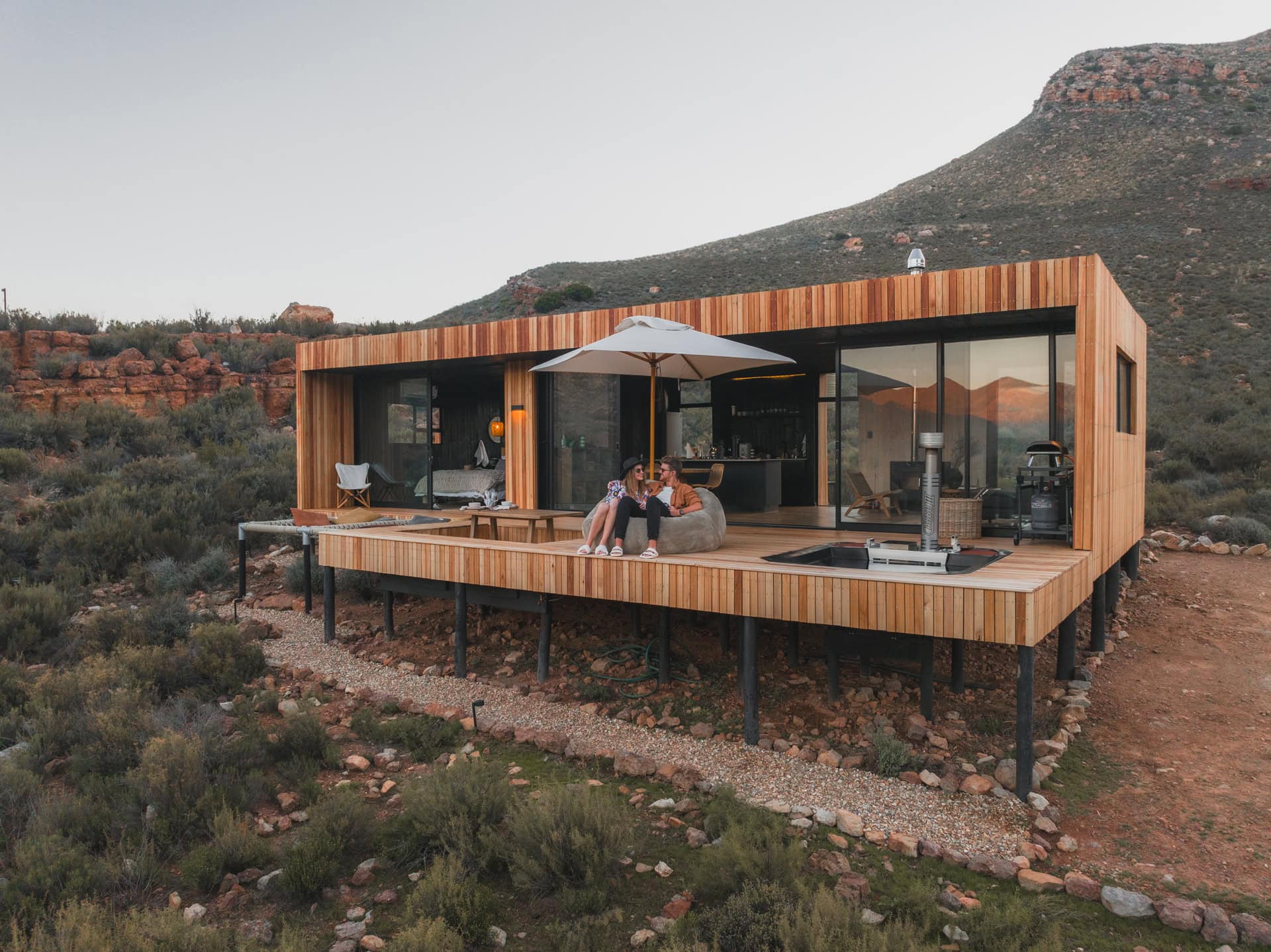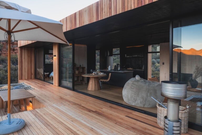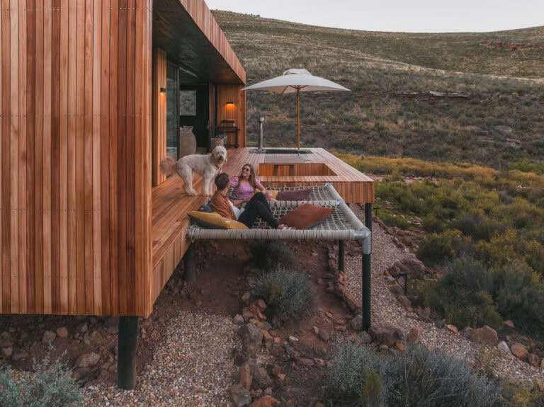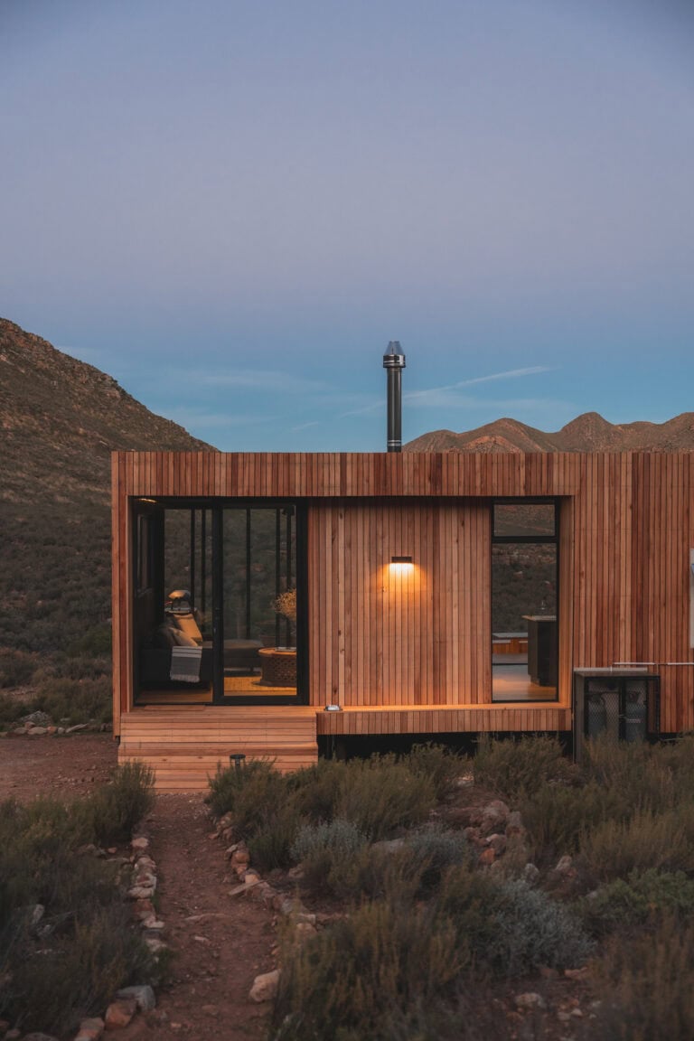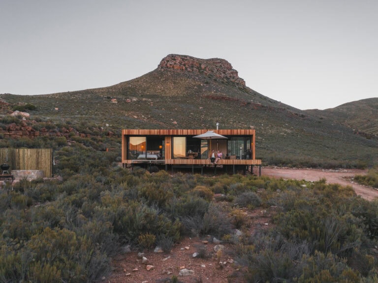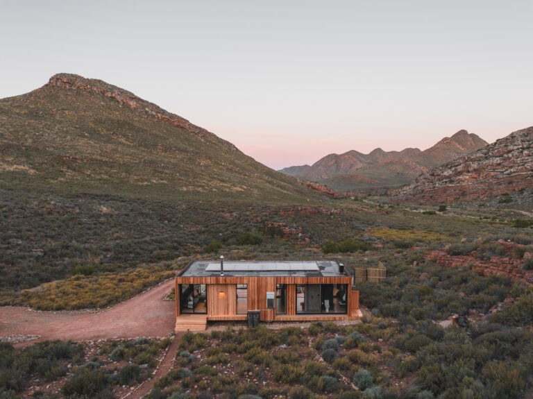 Located in the Breede Valley, between Montagu and Touws River (2 hours 30 minutes from Cape Town), this eco-friendly, modular cabin blends seamlessly into the surrounding landscape and offers the perfect escape for couples looking for seclusion and privacy.