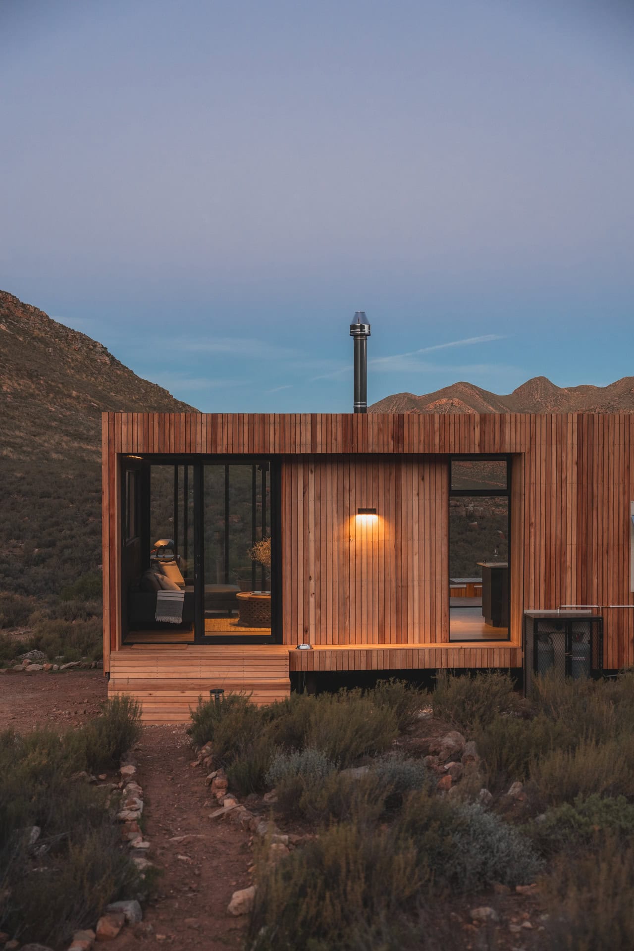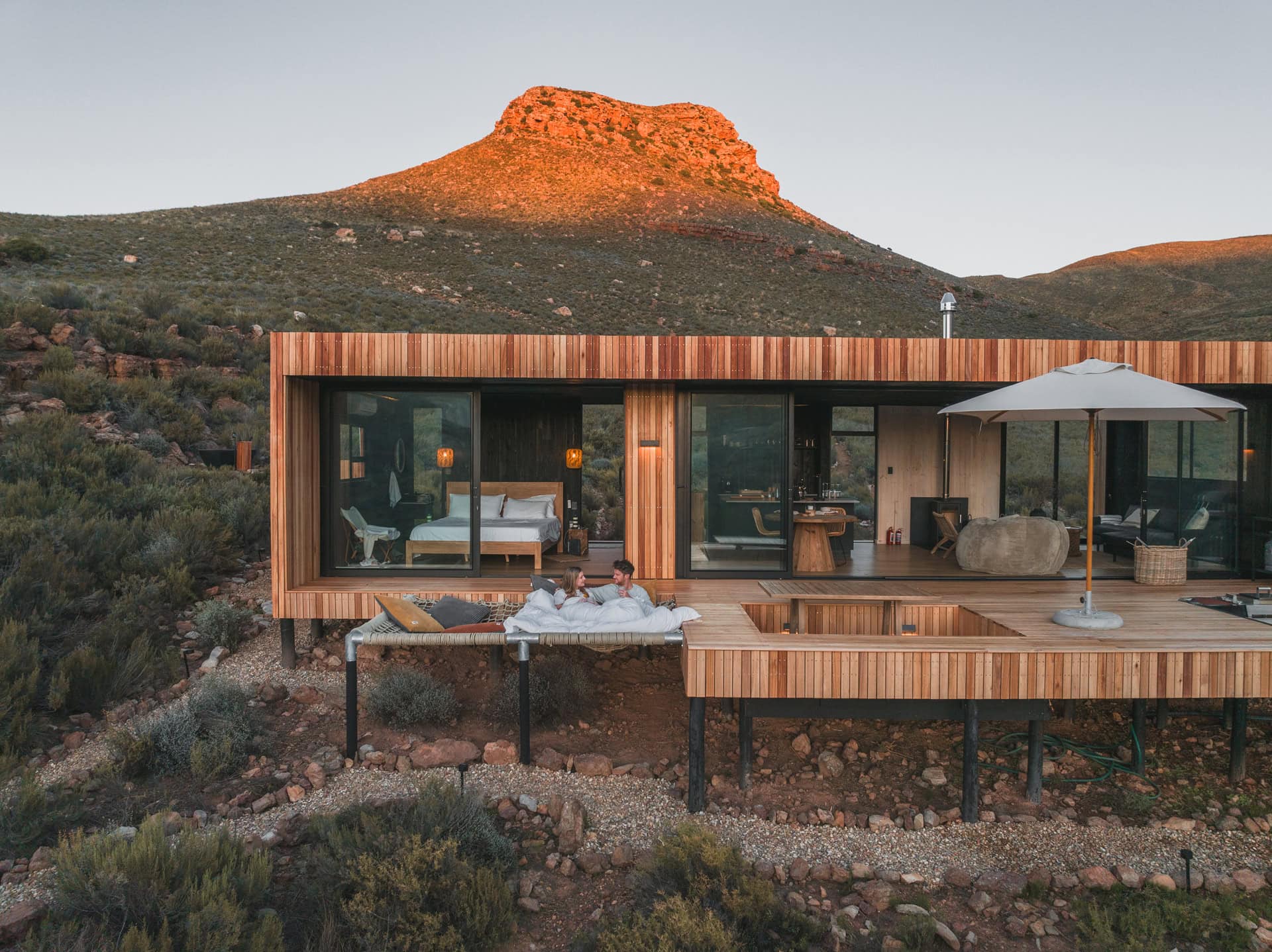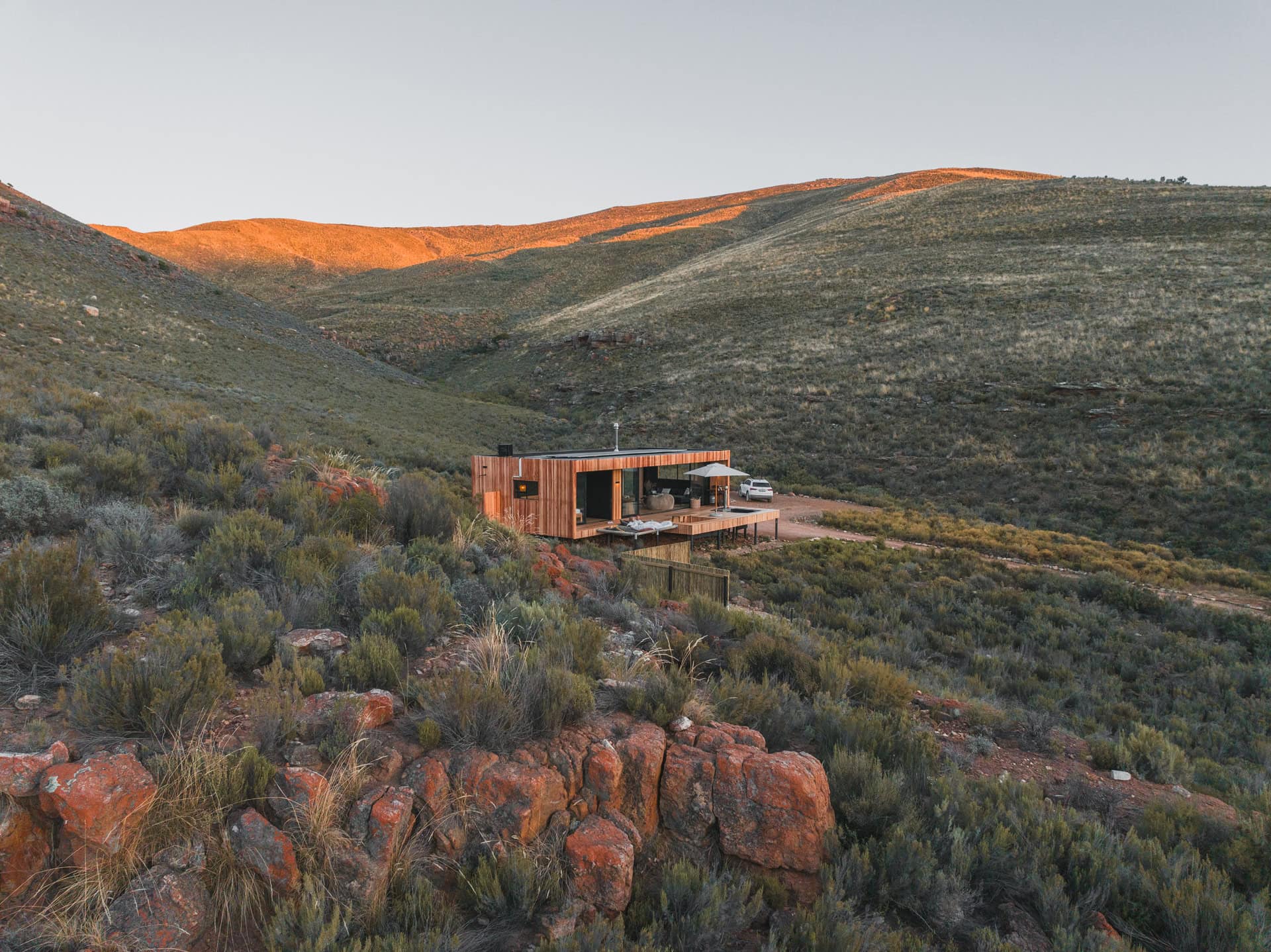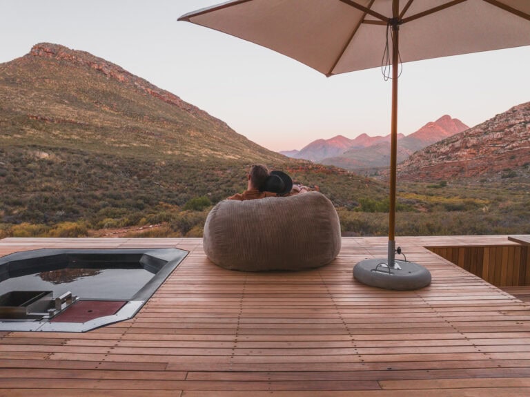 Located in the Breede Valley, between Montagu and Touws River (2 hours 30 minutes from Cape Town), this eco-friendly, modular cabin blends seamlessly into the surrounding landscape and offers the perfect escape for couples looking for seclusion and privacy.