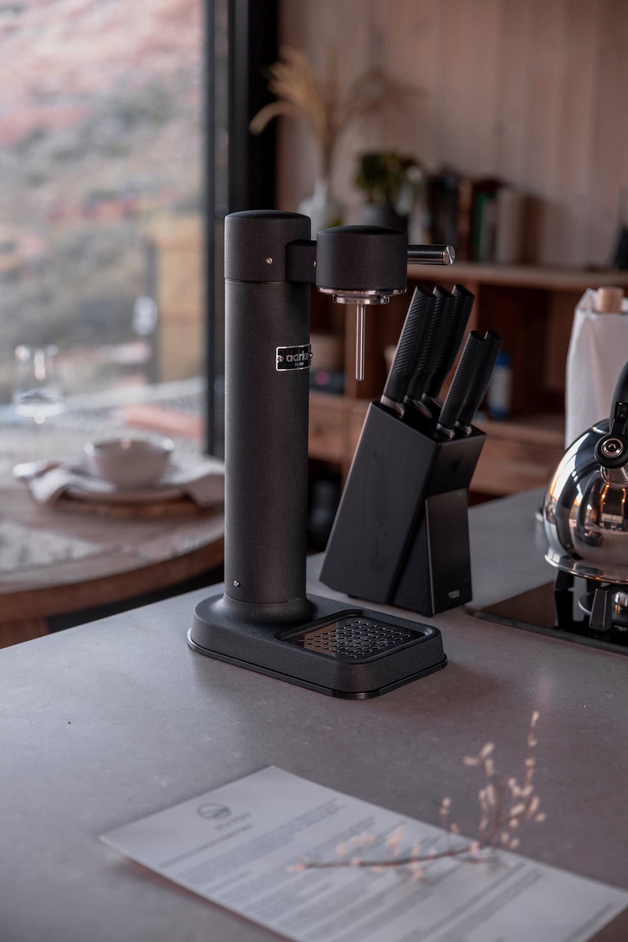 There’s a fully equipped kitchen with a SMEG gas stove, fridge-freezer, airfryer, Sodastream and bean-to-cup coffee machine. Coffee beans, tea, sugar, milk, rusks, olive oil, balsamic vinegar and salt & pepper are provided.