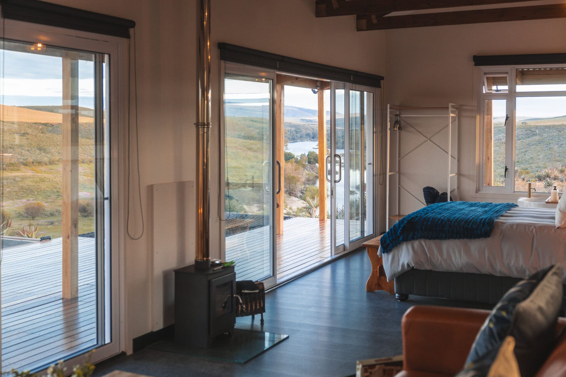 The incredible Breede River views, visible from every corner of the cabin – whether you’re in the hot tub, lounging on the cargo nets, or soaking in the bath. The birdlife completely blew us away, we’ve never seen so many birds of prey at a cabin before!