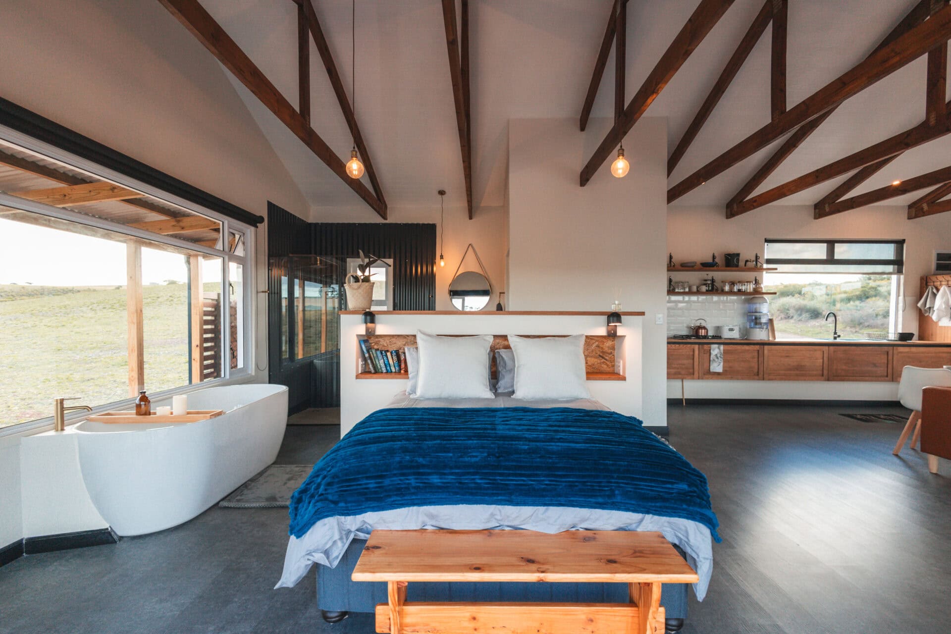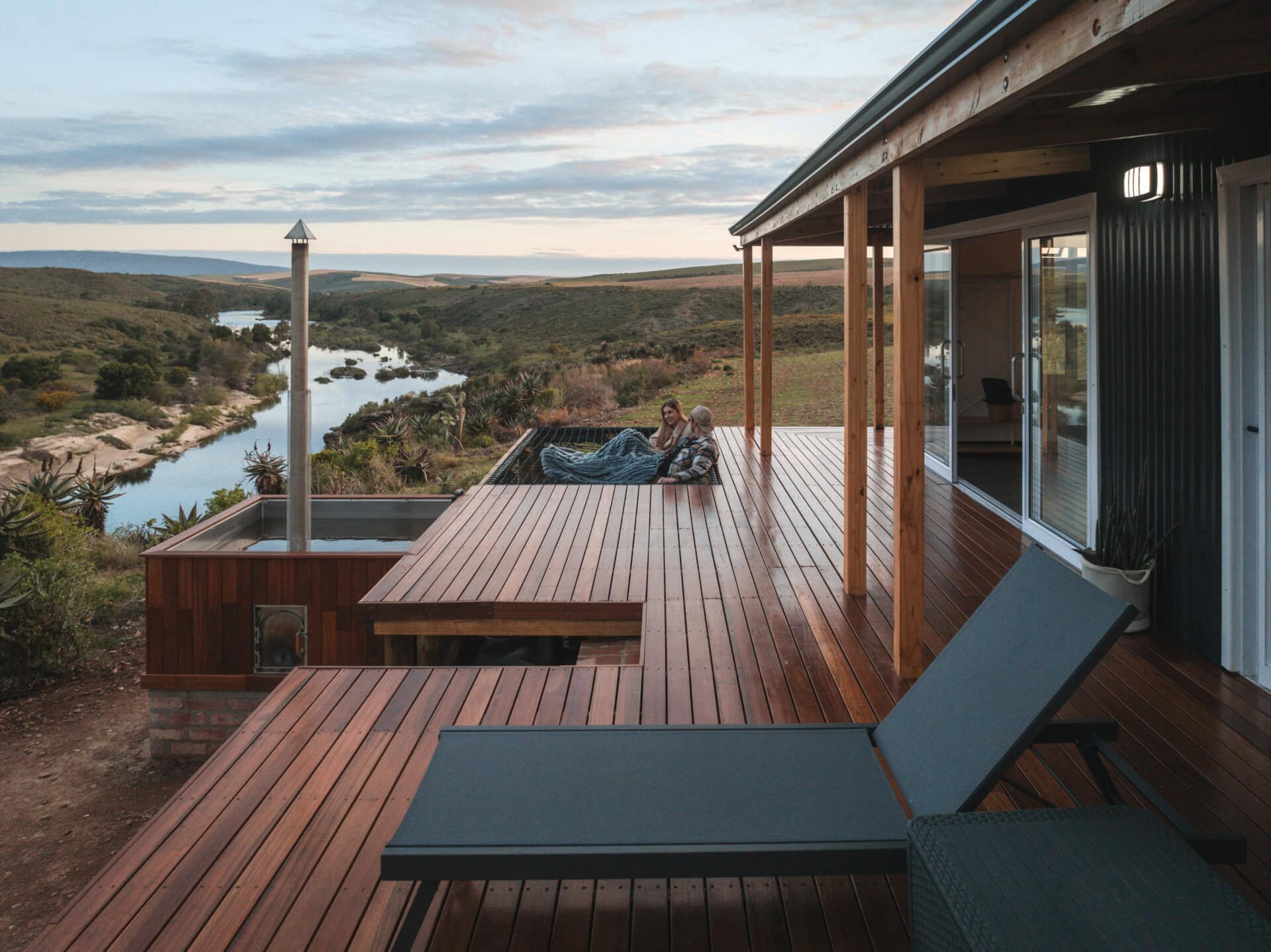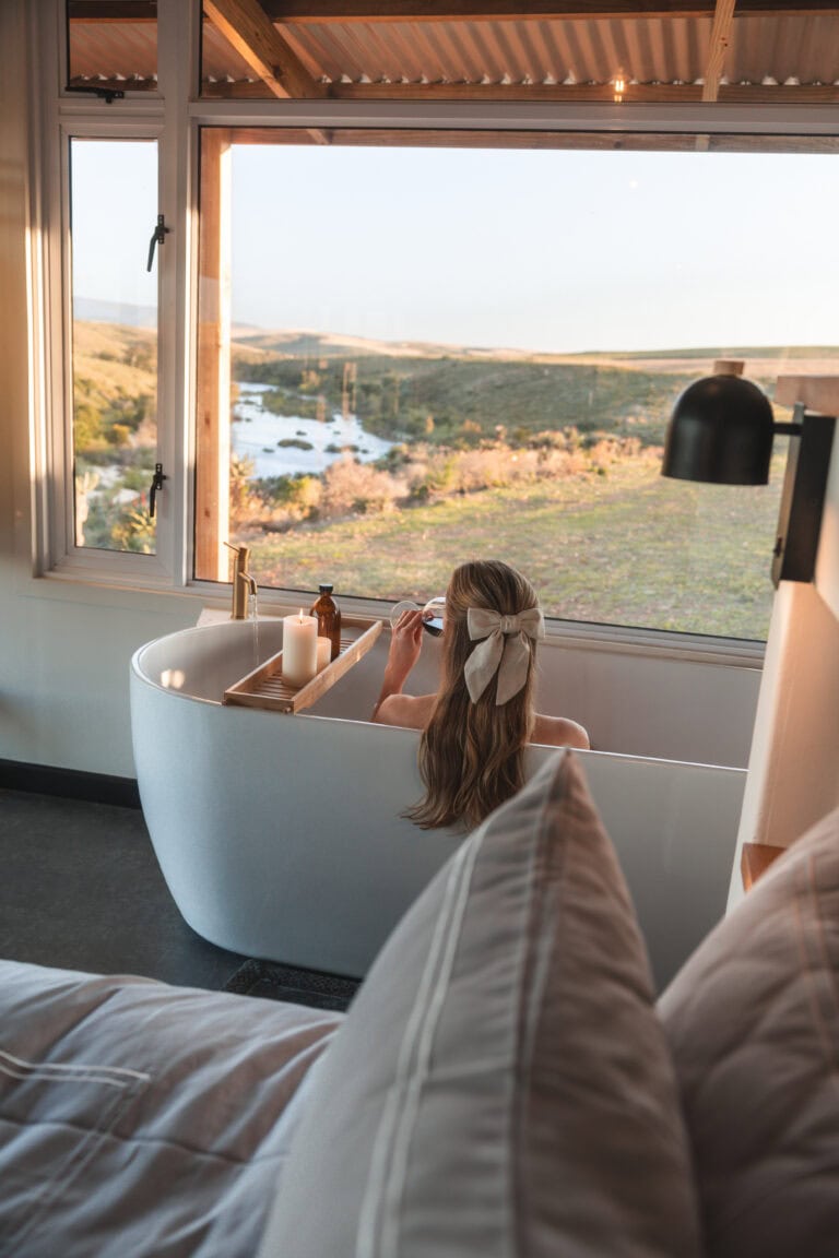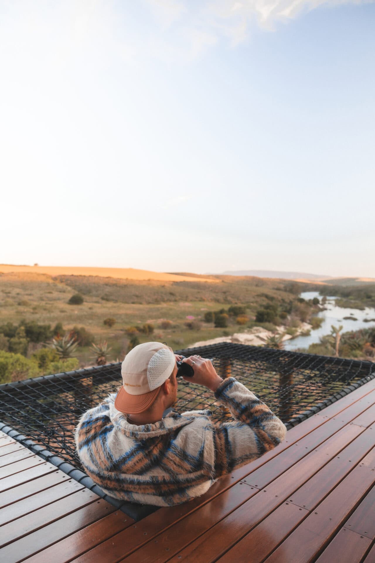 The incredible Breede River views, visible from every corner of the cabin – whether you’re in the hot tub, lounging on the cargo nets, or soaking in the bath. The birdlife completely blew us away, we’ve never seen so many birds of prey at a cabin before!