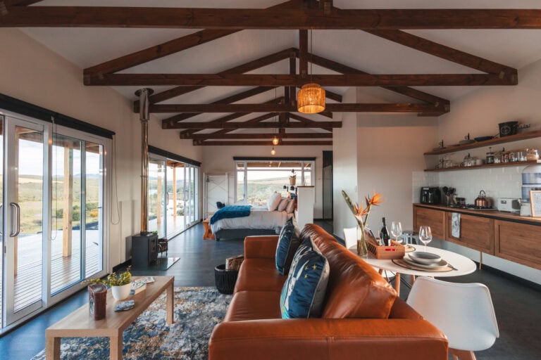 This cabin’s location is hard to beat! Perched above the Breede River, it offers the perfect setting for a peaceful getaway with some of the best birdwatching around, especially for spotting birds of prey!