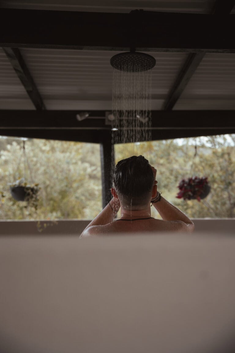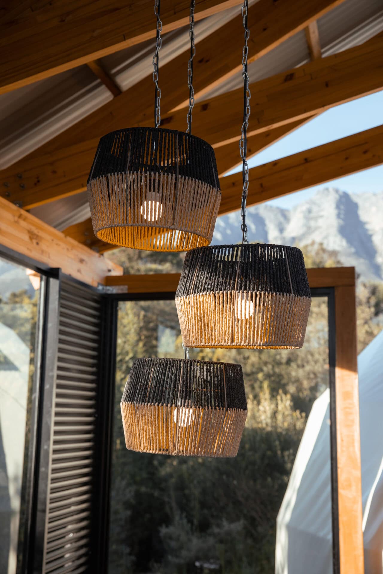 This is glamping like we’ve never experienced before! The cabin’s design is truly next level and incredibly unique, with the most gorgeous mountain backdrop. We loved relaxing in the bucket chairs beside the running stream, and when the fairy lights come on at night, it becomes even more magical!