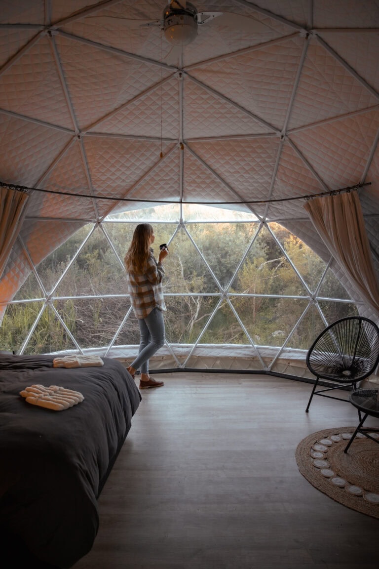 - Only the dome is fully enclosed, the living area and bathroom are semi-enclosed and exposed to the elements so pack warm for winter