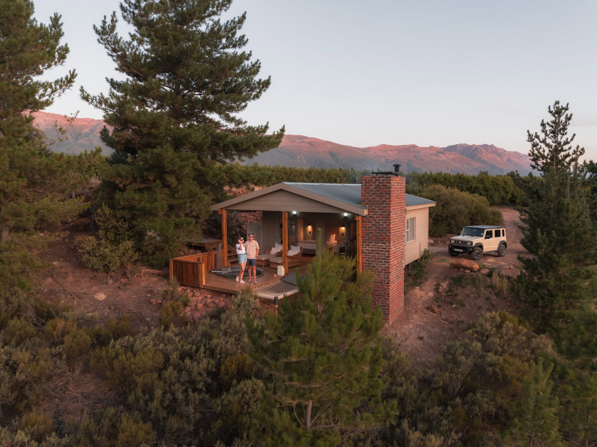 The cabin with it all! Just 90 minutes from Cape Town, it’s the perfect farm escape for two, offering breathtaking mountain views, a cargo net, wood-fired hot tub, sun loungers, an outdoor bath and shower, pizza oven, braai, aircon, TV, high speed wifi, and so many thoughtful touches — ideal for a romantic weekend getaway or working remotely.