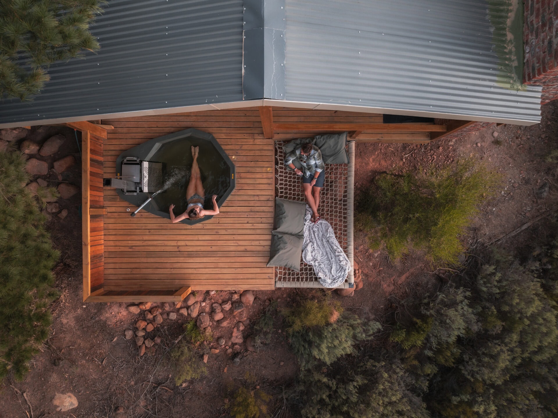 All Vrolik’s cabins are great, but we especially loved the layout of this one. It’s super spacious, both inside and on the deck, and with the hot tub not being undercover, you can stargaze at night or suntan during the day!