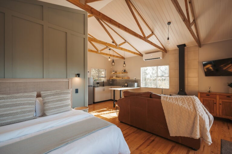 It’s also just a 10 minute drive into Tulbagh, perfect if you’re in the mood for wine tasting or grabbing a bite to eat. Spend your afternoons strolling through the orchards, exploring the farm on horseback or taking in the gorgeous mountain views from the cargo nets while sipping on their complimentary sherry.