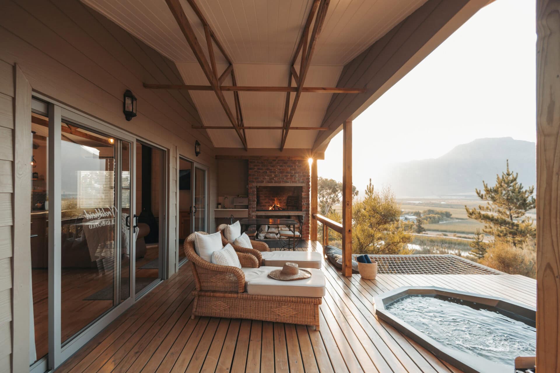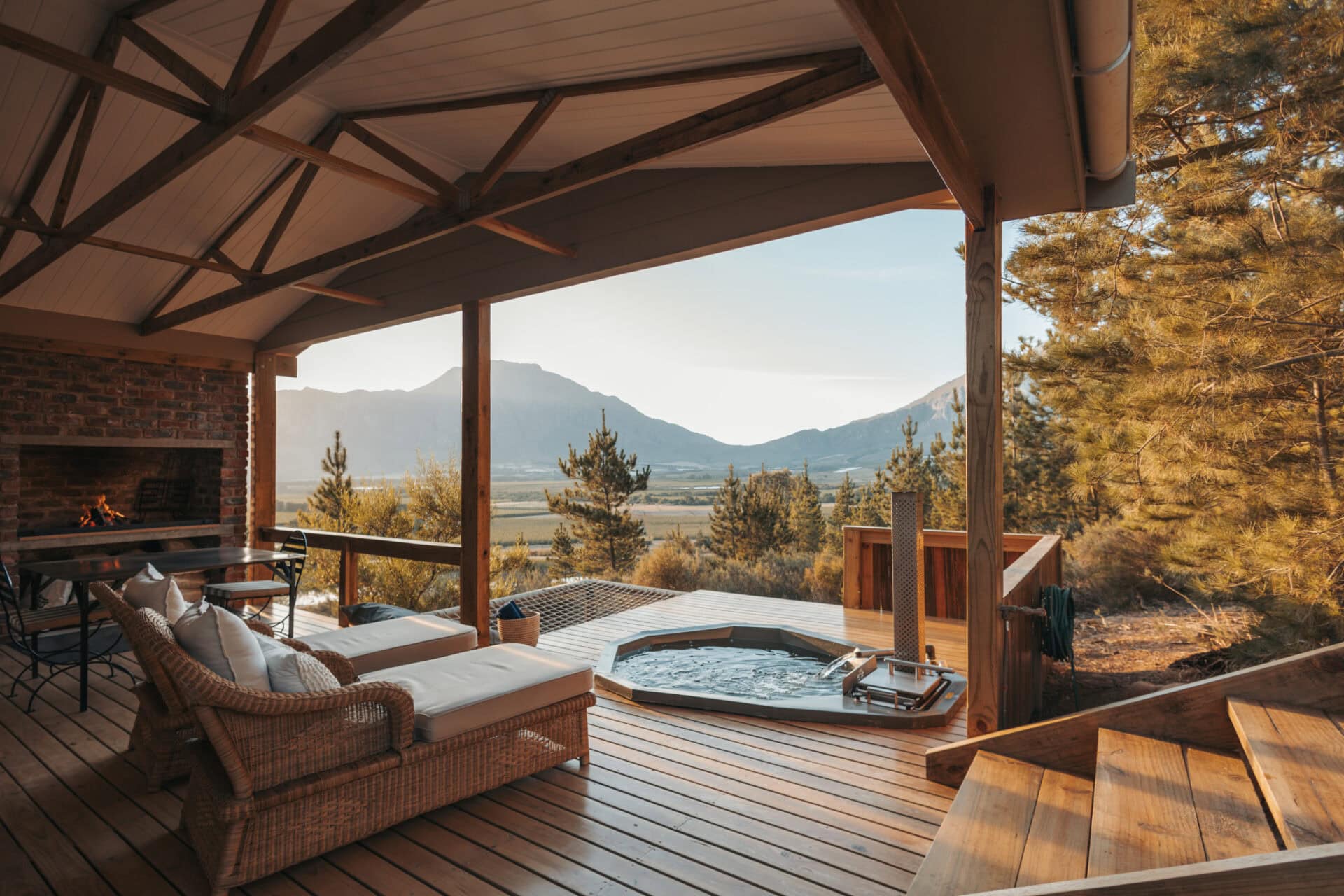The cabin with it all! Just 90 minutes from Cape Town, it’s the perfect farm escape for two, offering breathtaking mountain views, a cargo net, wood-fired hot tub, sun loungers, an outdoor bath and shower, pizza oven, braai, aircon, TV, high speed wifi, and so many thoughtful touches — ideal for a romantic weekend getaway or working remotely.