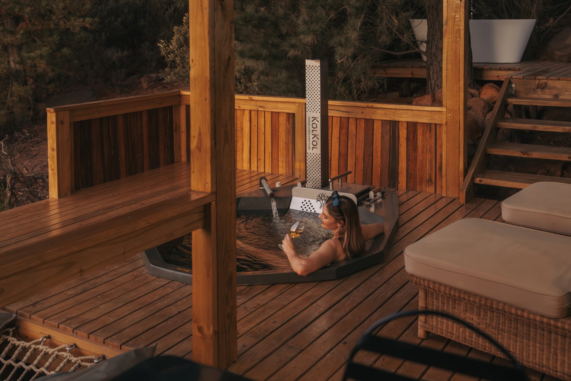 All Vrolik’s cabins are great, but we especially loved the layout of this one. It’s super spacious, both inside and on the deck, and with the hot tub not being undercover, you can stargaze at night or suntan during the day!