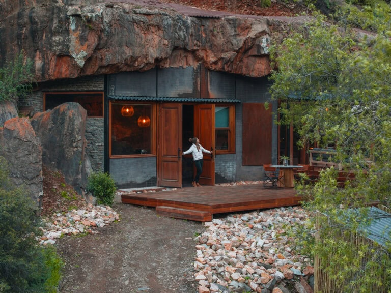 Carved into the mountains just outside Montagu (2.5 hours from Cape Town), The Cave House sleeps two and offers complete privacy. The natural rock formations of the cave are beautifully integrated into the design, creating a one-of-a-kind atmosphere both inside and out.