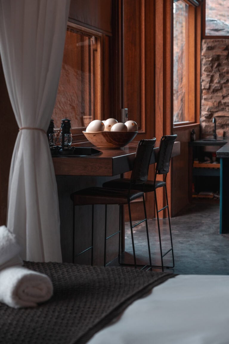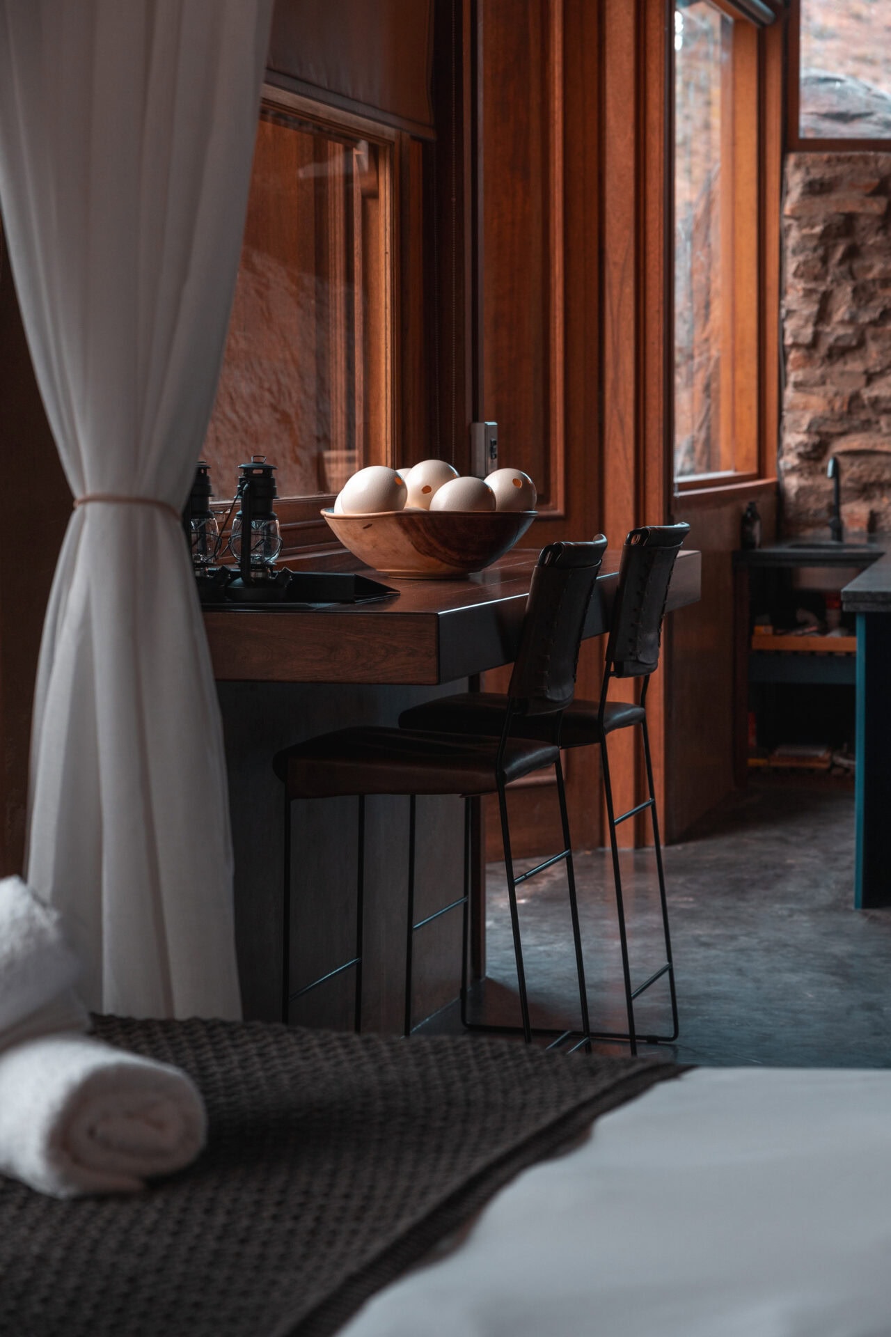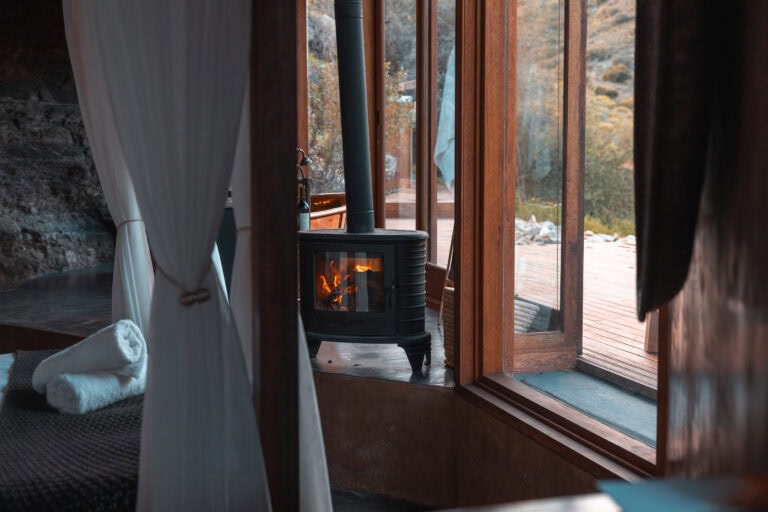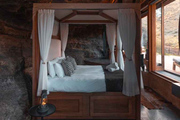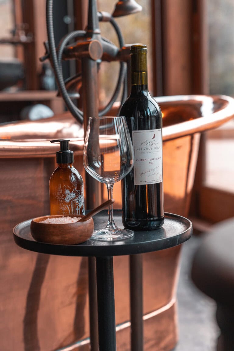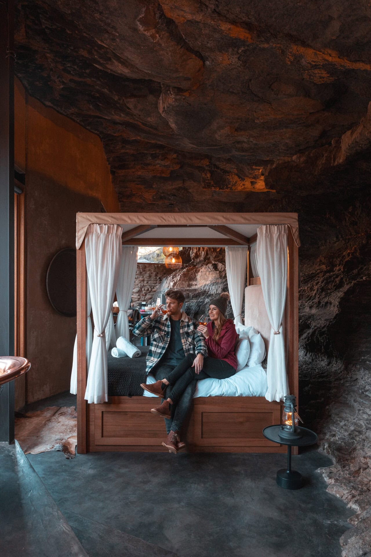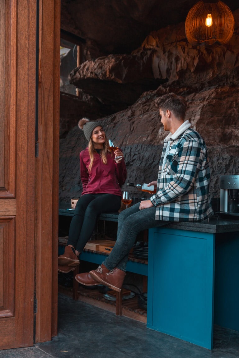 Sleeping in a cave was absolutely surreal and such a bucket-list experience! We couldn’t believe how warm and cozy it was, even in the middle of winter! The copper bath is definitely a showstopper, and we loved how there is no shortage of outdoor spaces to unwind, from the wood-fired hot tub to the pool and fire pit — each offering its own way to soak up the stunning surroundings.